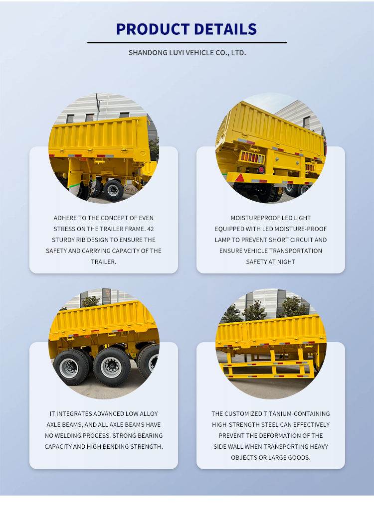 O semirreboque de estaca de aço-alumínio LUYI de 13 m e 3 eixos, originalmente da província de Shandong, China, é um semirreboque de parede lateral totalmente novo, especialmente projetado para transporte de carga em caminhões. Fabricado em aço de alta qualidade, o reboque equilibra resistência estrutural e durabilidade, com carga útil máxima efetiva de 20.001-25.000 kg, atendendo facilmente às necessidades de transporte de cargas médias e pesadas.