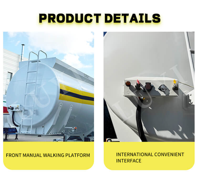 O semi-reboque tanque de combustível diesel LUYI de 3 eixos e 3 tanques 42.000L, um novo equipamento profissional de transporte de petróleo, é produzido em Shandong, China. Seu corpo é feito de aço, com dimensões de 1065025003800mm. O projeto de 3 tanques permite o carregamento classificado de diesel, e a grande capacidade de 42.000 litros, combinada com uma carga útil máxima de 5.001 a 10.000 kg, atende às necessidades de transporte de petróleo de pequenos e médios lotes.