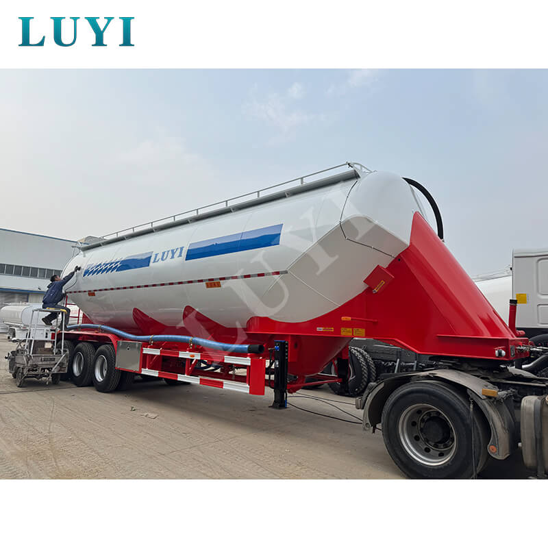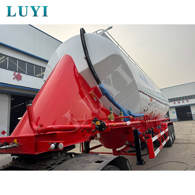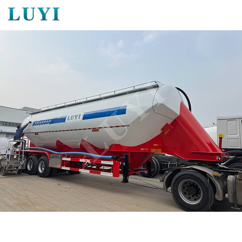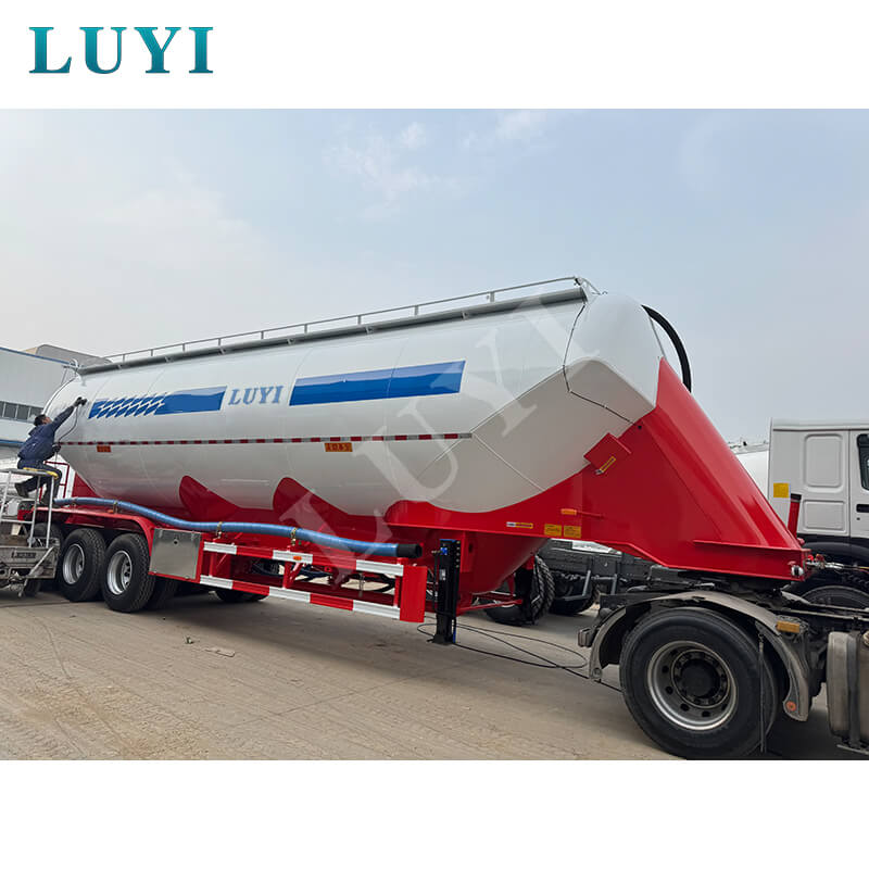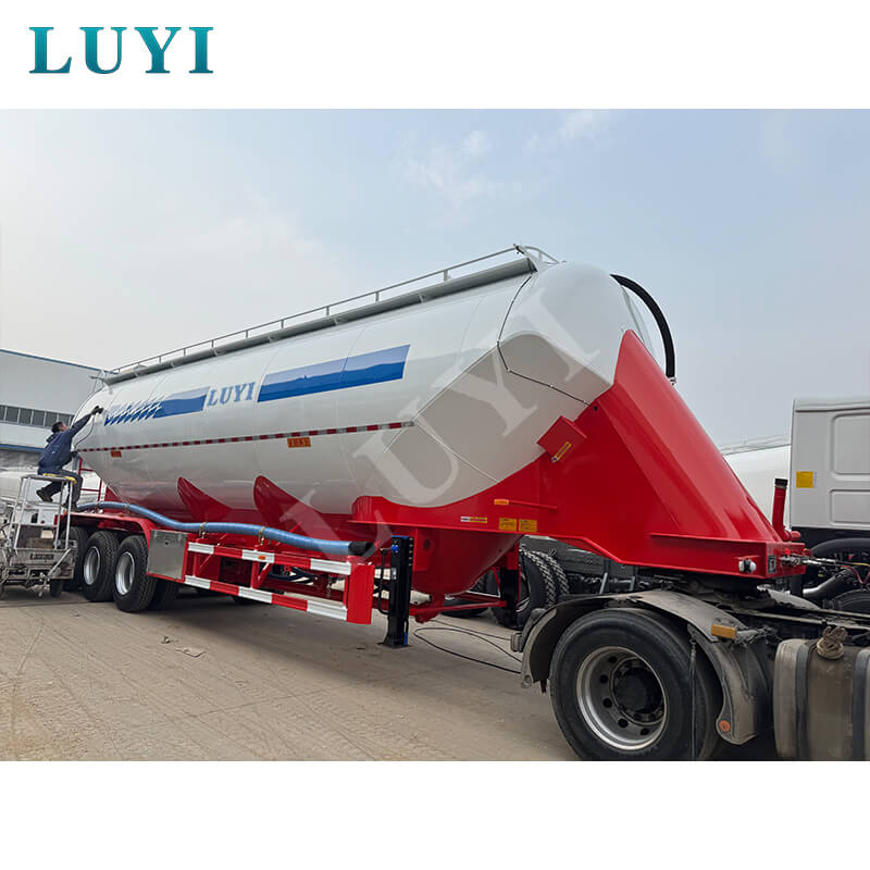 O caminhão-tanque de cimento a granel de grande capacidade e 3 eixos e 3 tanques Luyi é um semirreboque produzido em Shandong, China, e um equipamento profissional para transporte de cimento a granel. O corpo do caminhão-tanque é feito de aço ou aço carbono/alumínio. Com dimensões de 12.500×2.500×3.600 mm e uma carga útil máxima efetiva de 60 toneladas, seu design de 3 tanques permite o transporte de lotes, melhorando significativamente a eficiência.