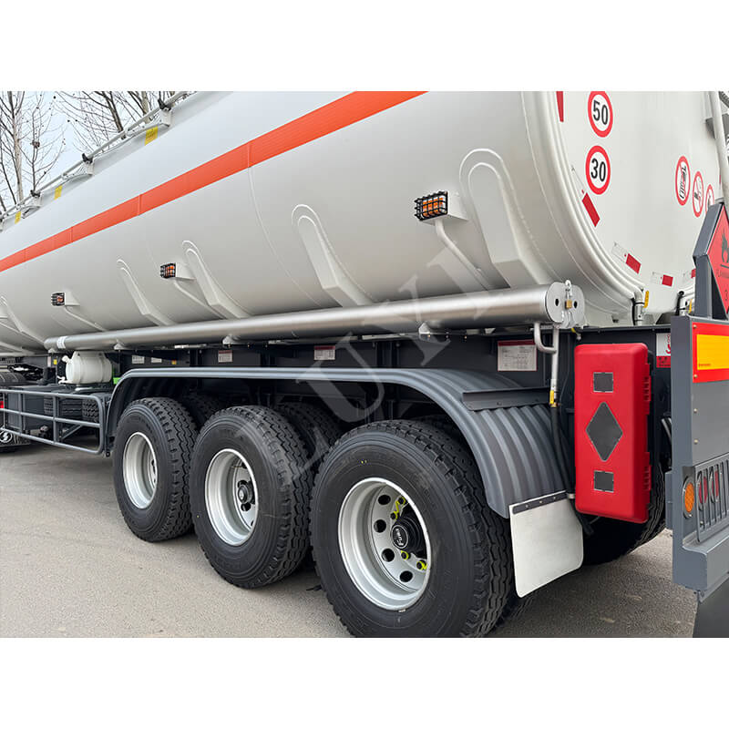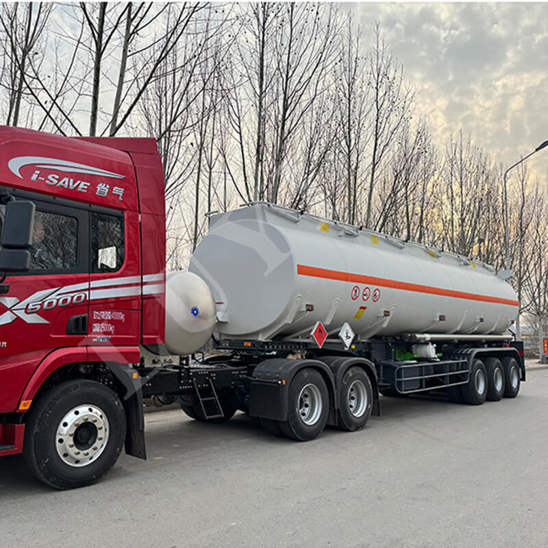 Com dimensões de 12.500 × 2.500 × 3.600 mm, o corpo do tanque é feito principalmente de aço e também pode ser combinado com materiais de aço carbono ou liga de alumínio, conforme necessário. Os 3 eixos são cuidadosamente selecionados de marcas conhecidas, incluindo CIMC Dongyue, FUWA e BPW, e combinados com suspensão mecânica para garantir estabilidade de condução. Os principais componentes estão bem equipados: pernas de suporte padrão JOST de 28 toneladas fornecem suporte estável; o pino mestre possui modelos JOST opcionais de 2 polegadas (50 mm) ou 3,5 polegadas (90 mm); os pneus oferecem três especificações, como 12R22.5; Molas de lâmina de 90×13×10 camadas melhoram o desempenho de suporte de carga. Além disso, a cor pode ser customizada de acordo com a necessidade do cliente, adaptando-se aos diversos cenários de transporte.