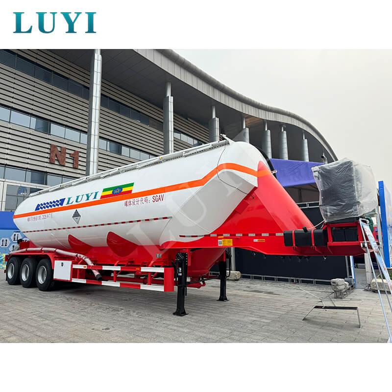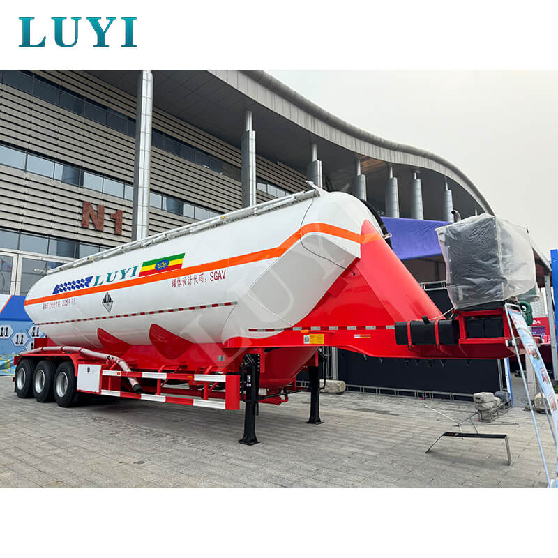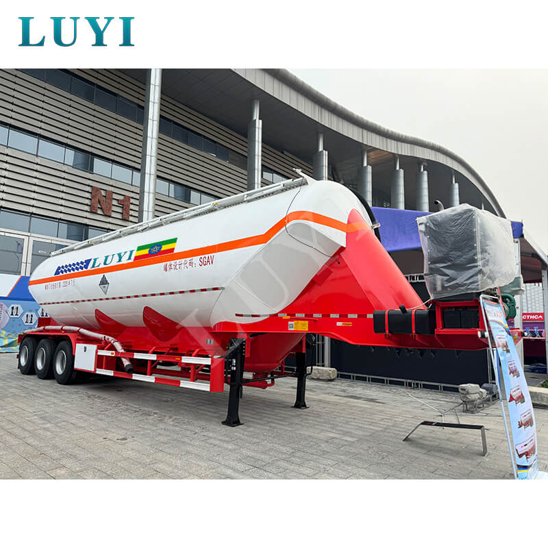 Originário da China, o semirreboque tanque de cimento vertical de 3 eixos da marca "Luyi" é um semirreboque totalmente novo para serviço pesado, especialmente projetado para o transporte de materiais em pó e granulados, como cimento a granel. Com uma capacidade de tanque de 35-40 metros cúbicos e uma forte capacidade de carga de 50 toneladas, pode carregar uma grande quantidade de materiais de uma só vez, reduzir a frequência de transporte e melhorar significativamente a eficiência operacional.