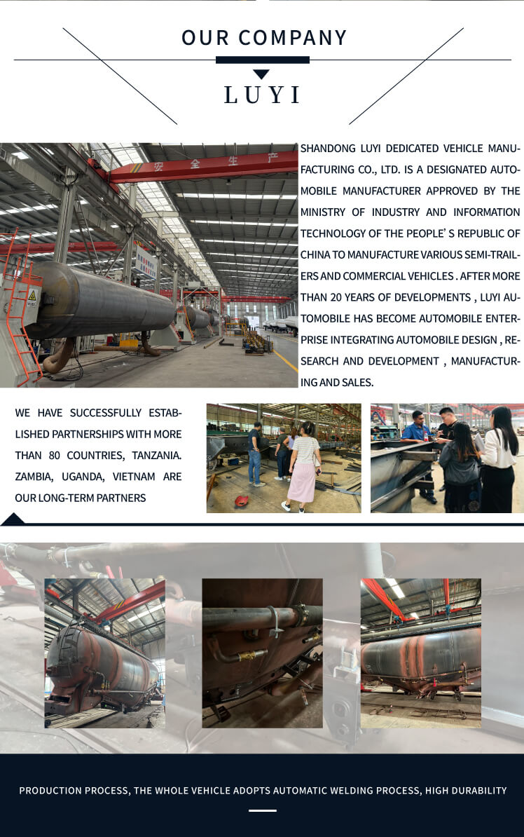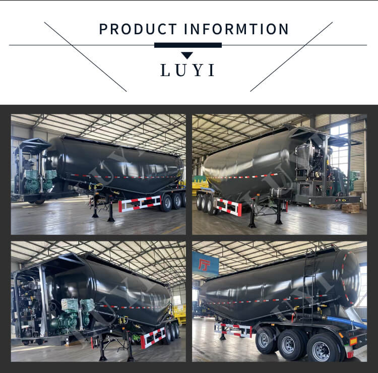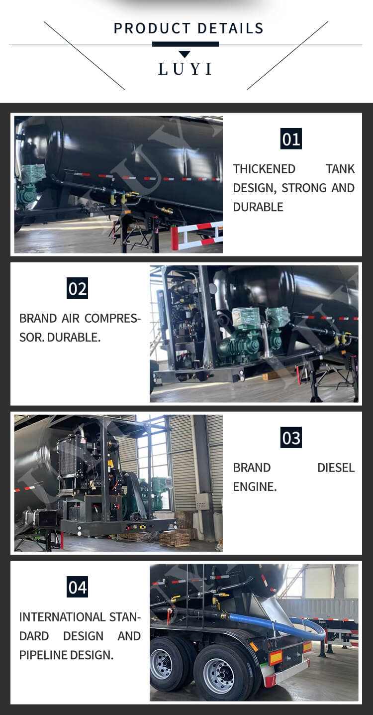 O semirreboque tanque de cimento Luyi de 3 eixos e 35 metros cúbicos, originário da província de Shandong, China, é um semirreboque de alta qualidade especialmente construído para transporte de cimento a granel. Possui capacidade de carga de 80 toneladas, carga efetiva variando de 60 a 80 toneladas e carga efetiva máxima de 80.000 kg, o que pode atender com eficiência às necessidades de transporte de grandes volumes.