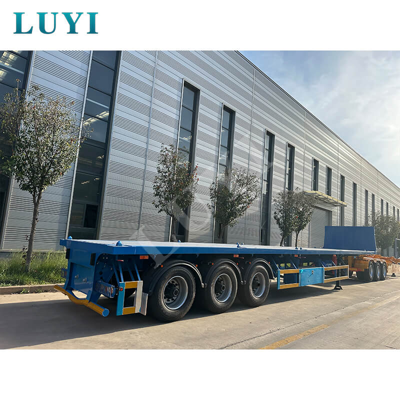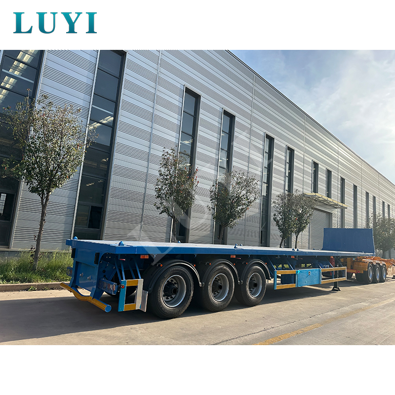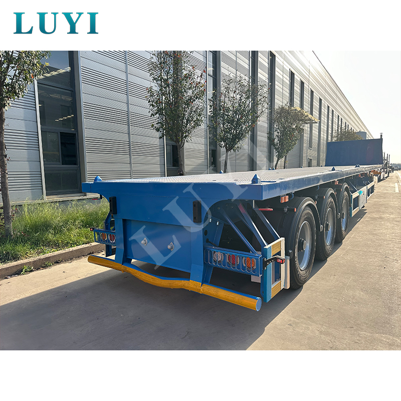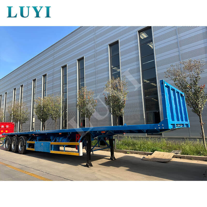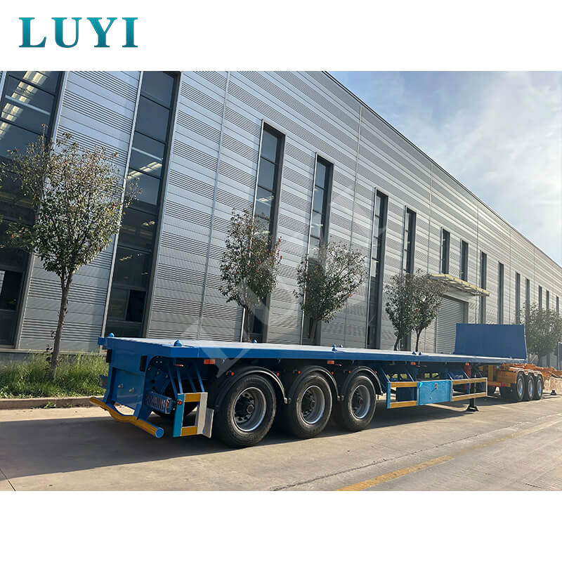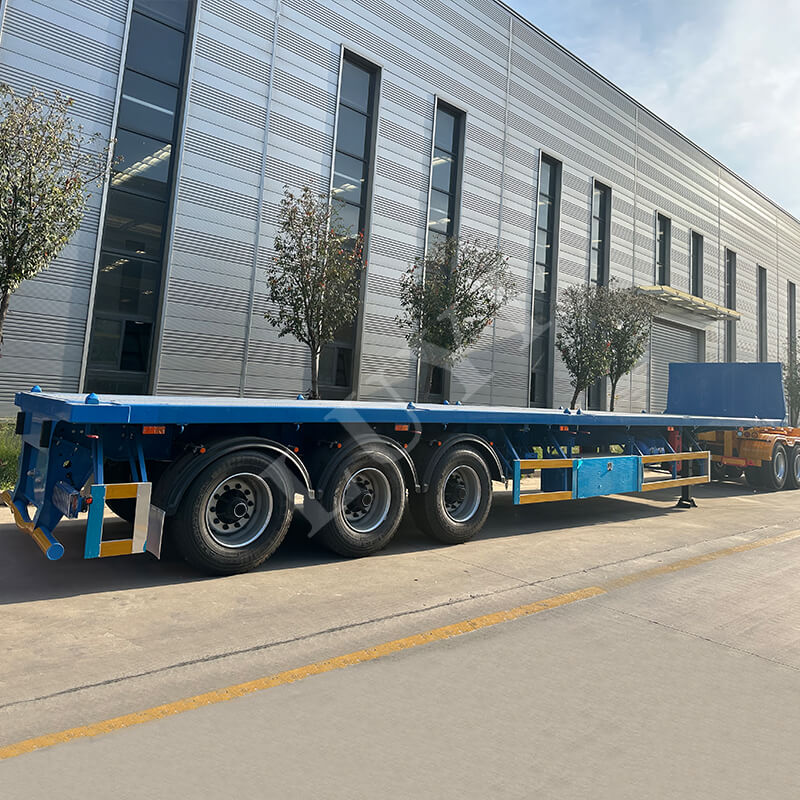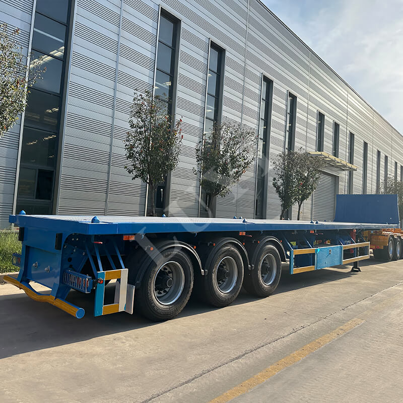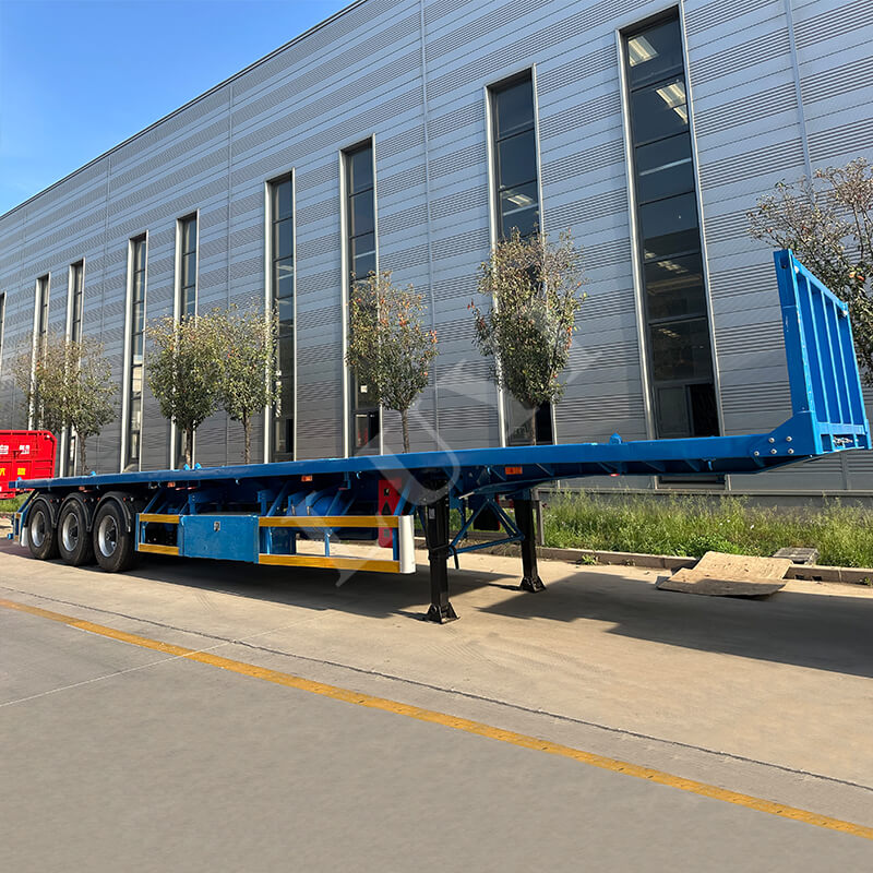 O semirreboque plataforma de 3 eixos e 40 toneladas é um semirreboque recentemente compatível feito de aço de alta resistência, equipado com 12 pneus e suspensão confiável, com capacidade de carga de 40 toneladas adequada para transporte de carga pesada.