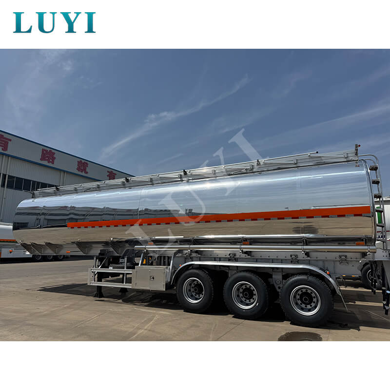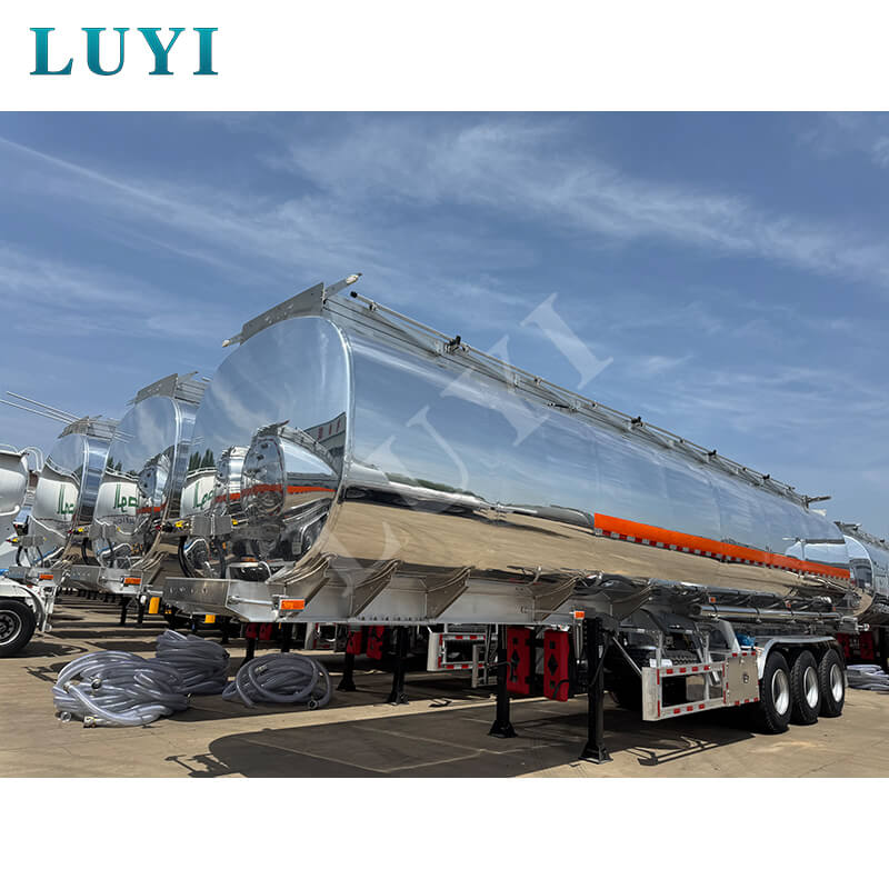 O semirreboque tanque de óleo de liga de alumínio de 3 eixos 45.000L 5 tanques LUYI, originário da província de Shandong, China, é um equipamento de alta eficiência e seguro para transporte de petróleo. Possui dimensões de 12.500×2.500×3.600 mm e capacidade de carga efetiva máxima de 60 toneladas, capaz de transportar com flexibilidade meios como diesel, gasolina, petróleo e petróleo bruto.