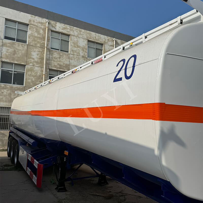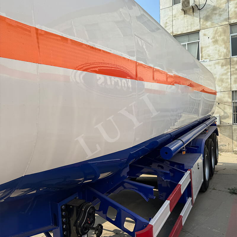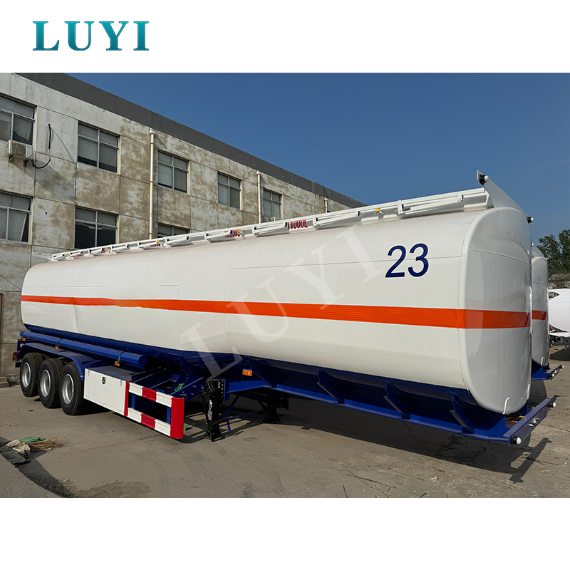 O semirreboque tanque de óleo Luyi de 3 eixos e 45.000 litros e 5 compartimentos é um novo reboque completo tipo caixa para serviço pesado com especificações de 12.500 × 2.500 × 3.600 mm, capacidade de carga de 50 toneladas, adequado para o transporte de diesel e outros líquidos.