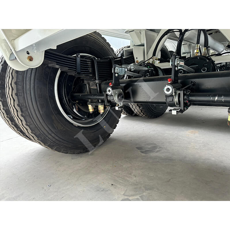 As dimensões do veículo são 14.000×2500×40.000 mm, com volume de tanque de 50.000 litros, e a carga efetiva máxima corresponde a isso, podendo atender às necessidades de transporte de grandes quantidades de produtos líquidos. Estão disponíveis duas opções de suspensão mecânica e suspensão pneumática, combinadas com pneus 12R22,5 e jantes 9,00-22,5, garantindo estabilidade e segurança de condução. Os estabilizadores padrão de 28 toneladas fornecem suporte estável quando o veículo está estacionado.