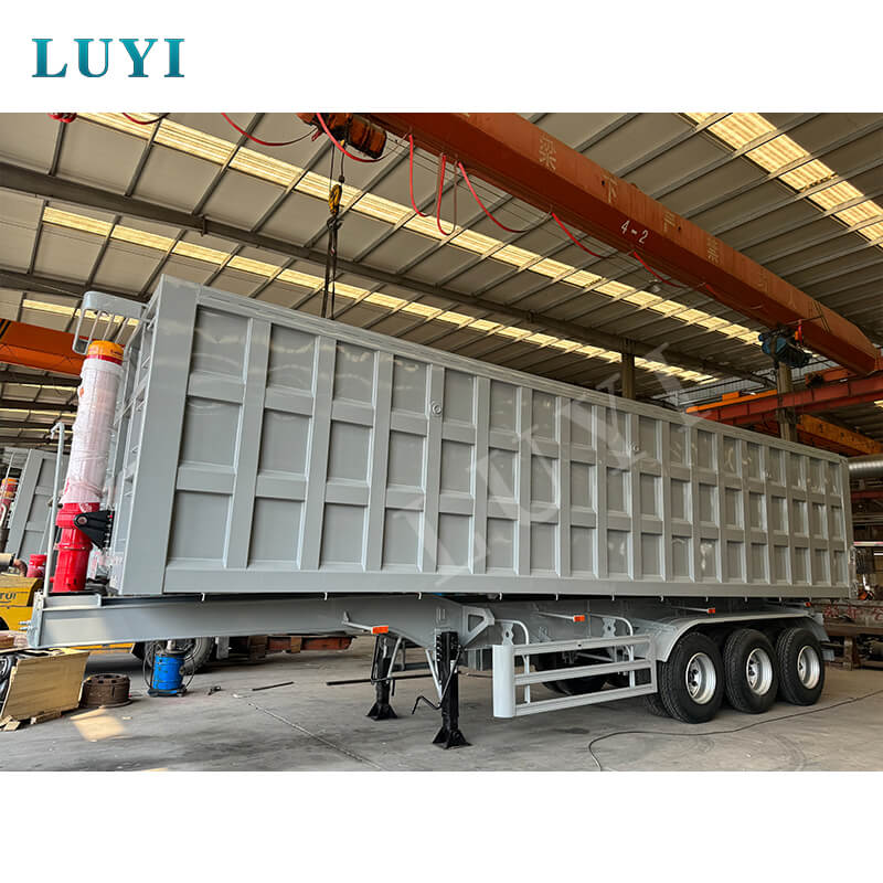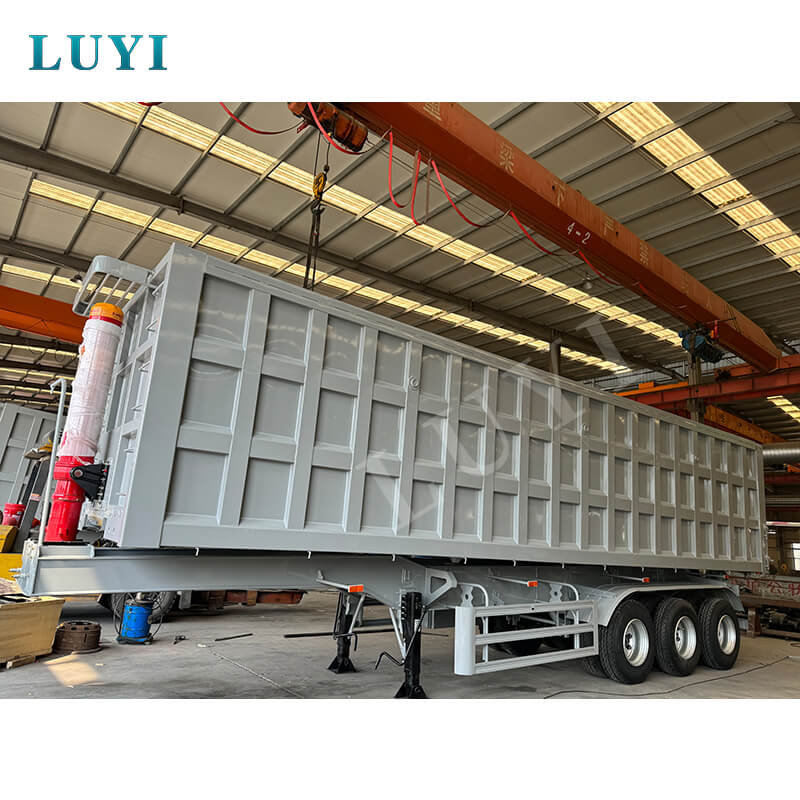 Este semirreboque basculante traseiro com cilindro de elevação hidráulica de 3 eixos e 50-60 toneladas da LUYI é uma solução resistente para transporte de areia e cascalho. Originário de Shandong, China, é construído com aço de alta qualidade, ostentando uma carga útil máxima de 80T para lidar com cargas pesadas sem esforço.