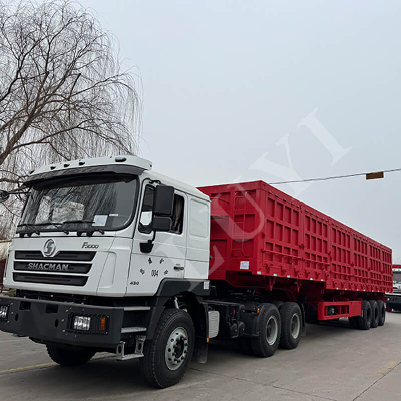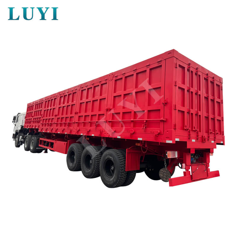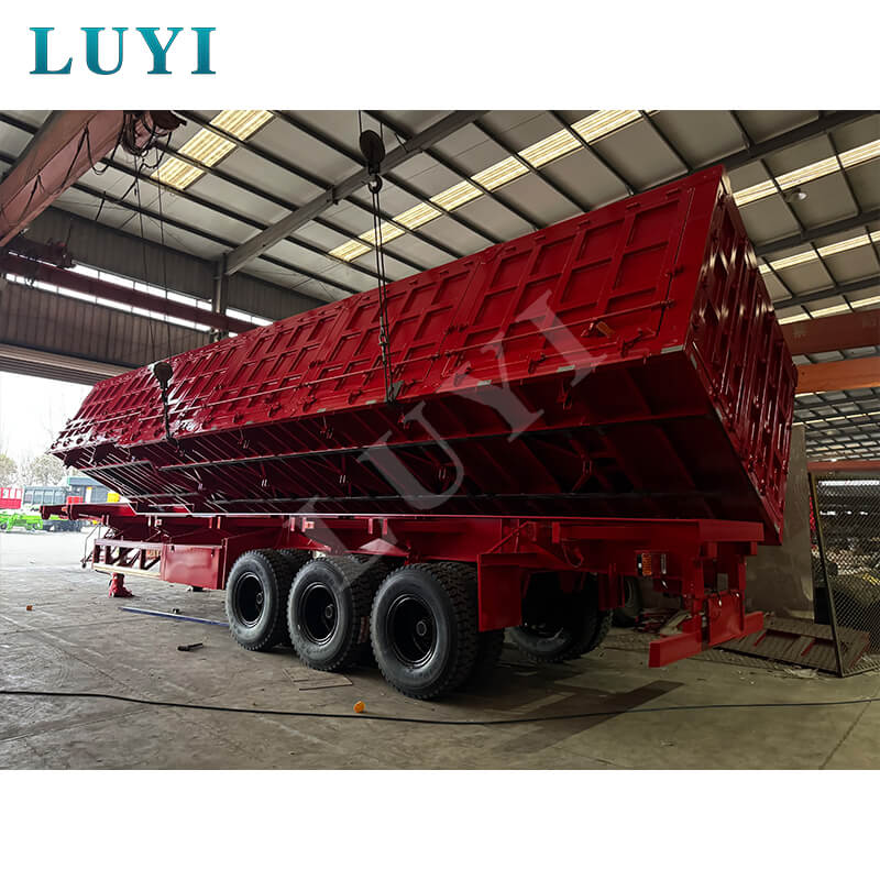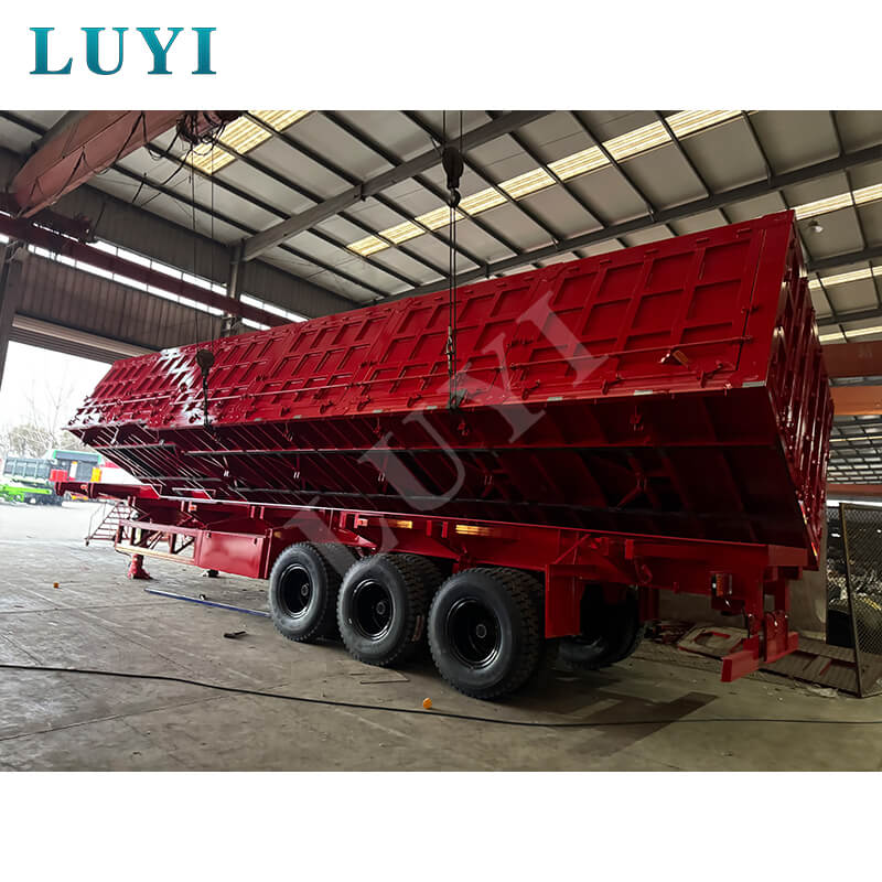 Originário da província de Shandong, China, o semirreboque basculante de parede lateral Luyi de 3 eixos e 60-80 toneladas é especialmente projetado para reboque de caminhões, servindo como um equipamento capaz para transporte de cargas pesadas. Construído em aço de alta resistência, mede 15.500 mm × 2.500 mm × 2.000 mm e possui estrutura lateral, adequada para carregamento de diversos tipos de mercadorias.
