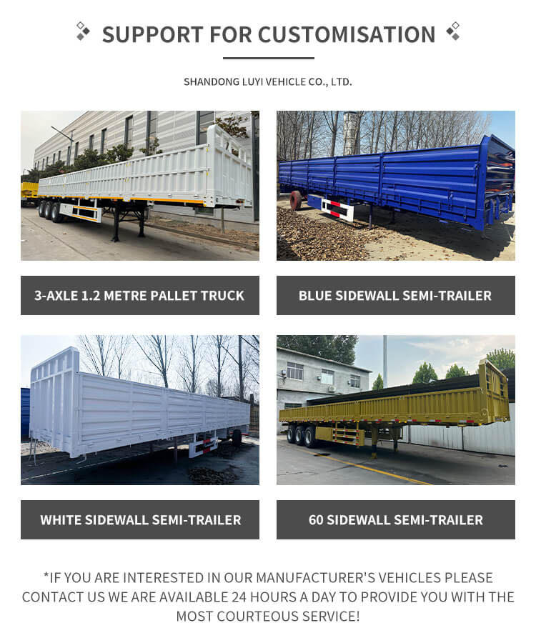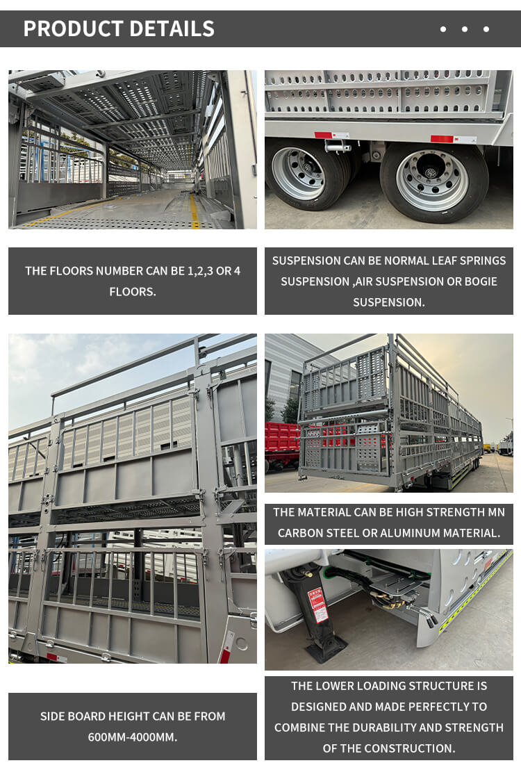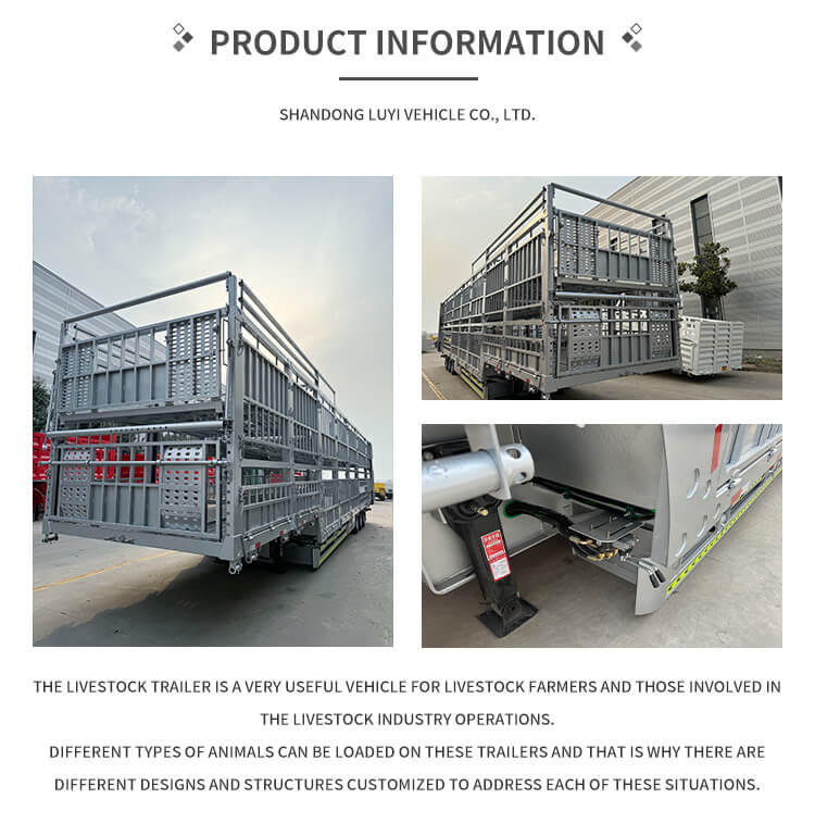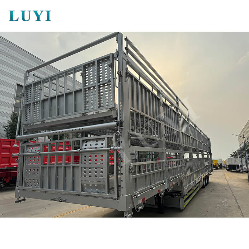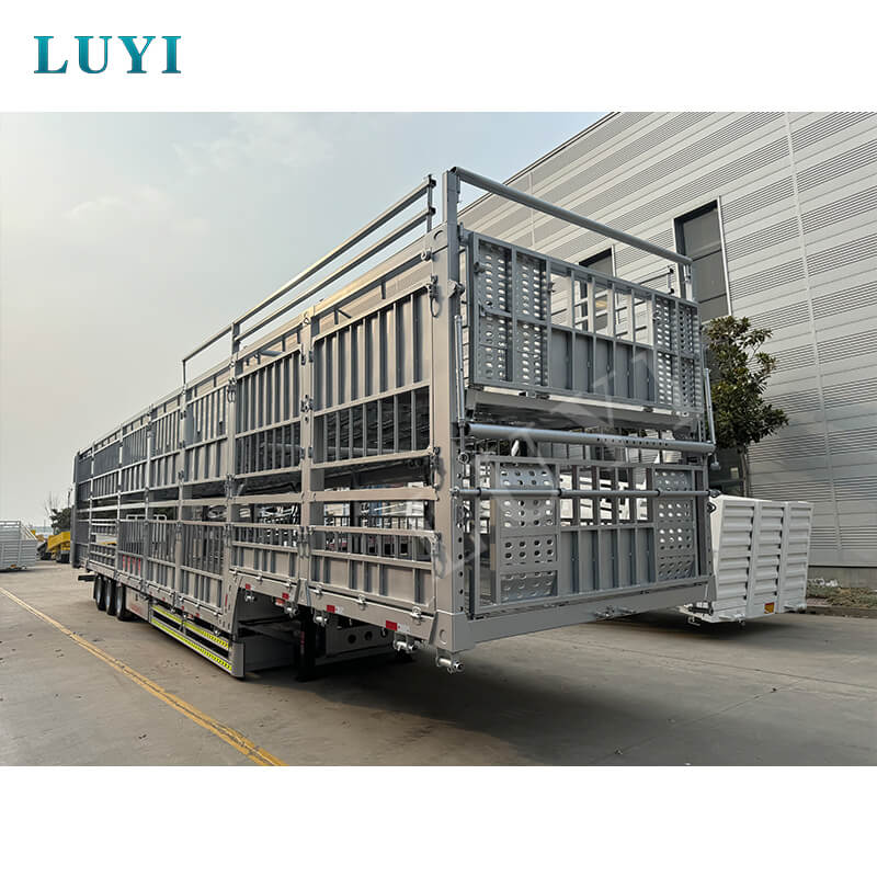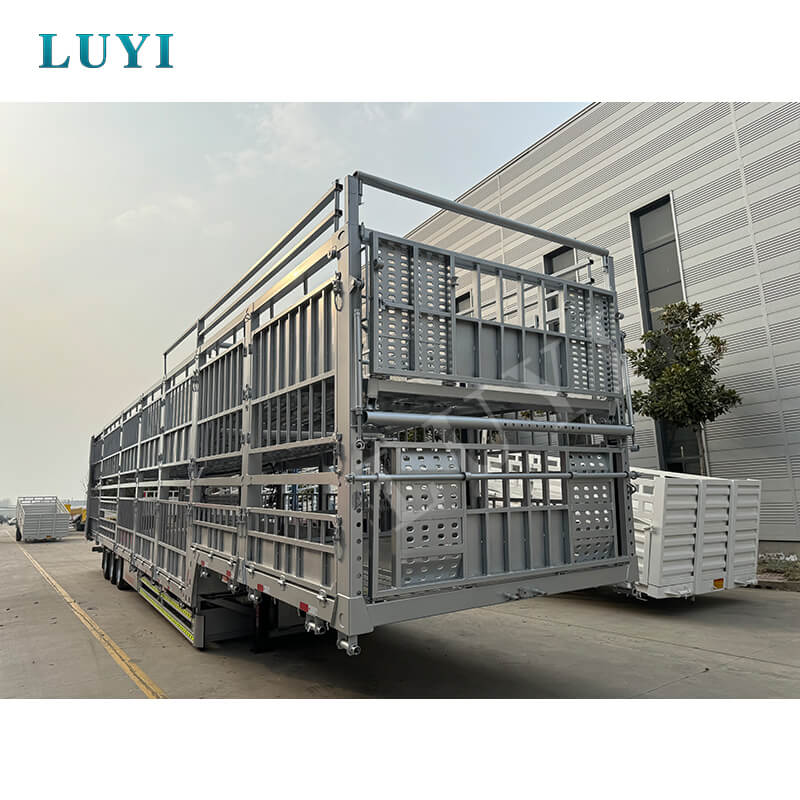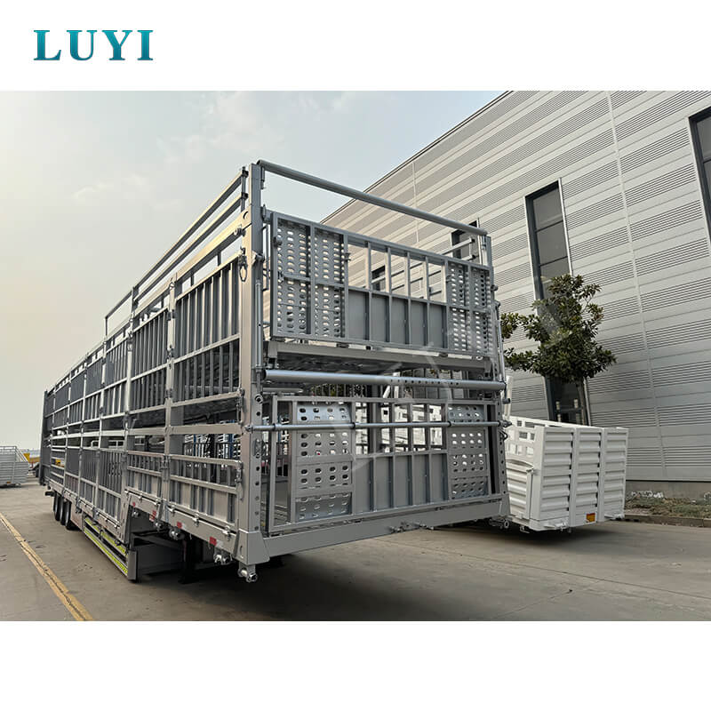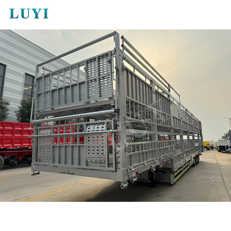 O semirreboque de estaca dupla camada LUYI de 3 eixos e 60 toneladas, originário da província de Shandong, China, é um semirreboque caminhão de alta eficiência dedicado ao transporte de gado e carga a granel. Possui várias certificações, incluindo ISO, CCC, BV, CE e DOT, garantindo qualidade confiável e compatível.