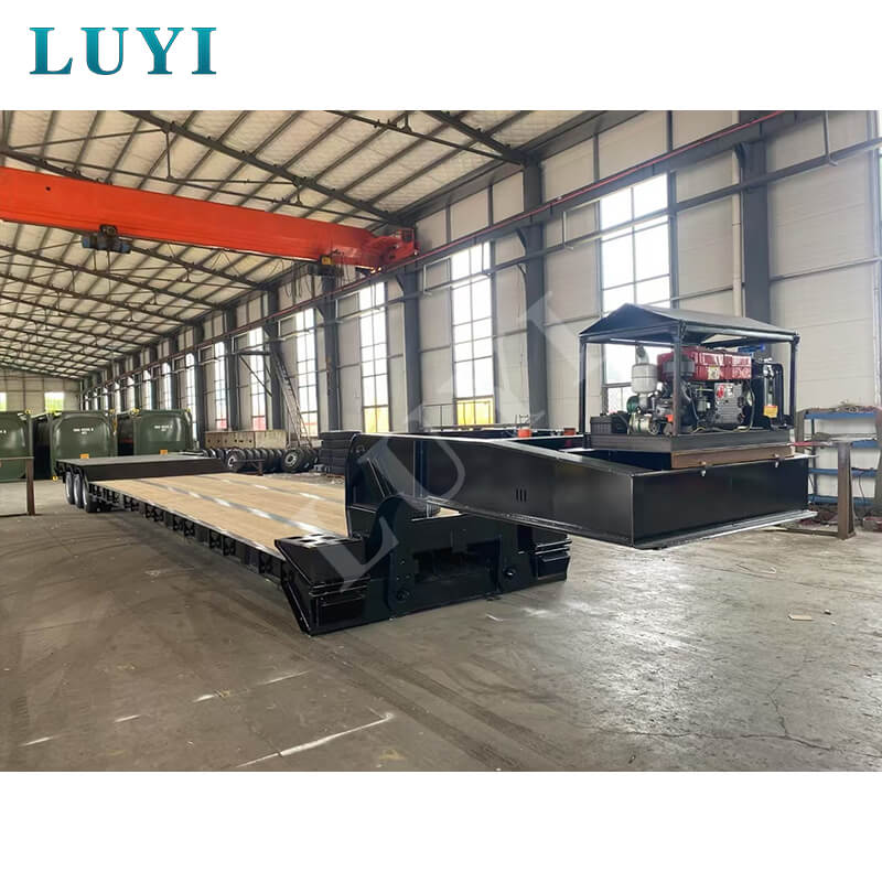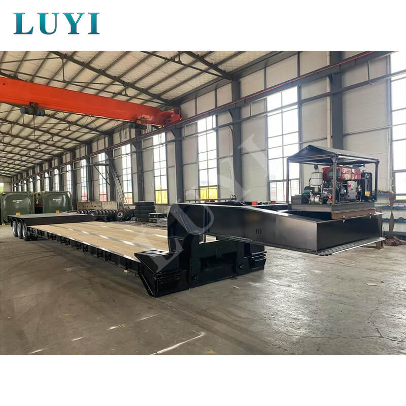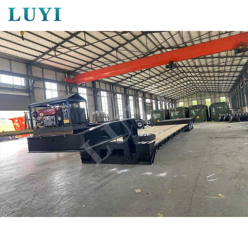 Originário de Shandong, China, o Semirreboque Lowboy LUYI de 3 eixos e 60 toneladas é um semirreboque profissional especialmente projetado para o transporte de equipamentos pesados. Construído com aço de alta qualidade e adotando tecnologia de pintura de poliuretano, possui resistência à corrosão e durabilidade. Medindo 2200030001600mm, é adequado para vários cenários de transporte de equipamentos pesados.