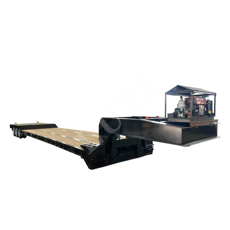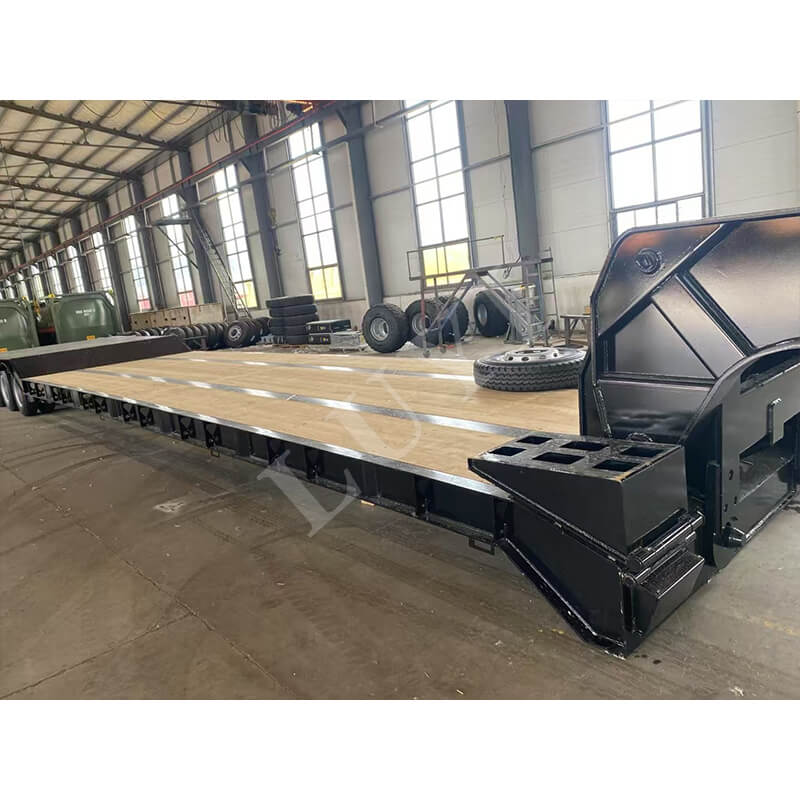 Equipado com configuração de 3 eixos, utiliza eixos de marcas conhecidas como BPW e Fuwa. A suspensão pode ser selecionada de forma flexível entre suspensão mecânica ou pneumática, combinada com pneus 12R22.5, proporcionando excelente estabilidade de direção e desempenho de suporte de carga, com uma carga útil máxima efetiva de 60 toneladas. Ele é configurado com pernas de pouso padrão de 28 toneladas, e o pino mestre oferece modelos JOST de 2 polegadas (50 mm) ou 3,5 polegadas (90 mm), garantindo conexão estável e alta adaptabilidade. Com cores personalizáveis e garantia de seis anos, é uma escolha confiável para transporte de equipamentos pesados.