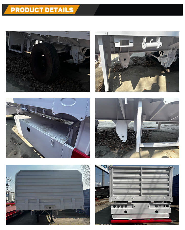 Medindo 12.500 × 2.500 × 1.600 mm, é equipado com 3 eixos (opcionais em marcas conhecidas como Fuhua, BPW, SAIF e CIMC) e opções de suspensão dupla (mecânica e pneumática) para uma condução suave. As pernas de suporte padrão de 28 toneladas garantem carga e descarga segura, enquanto os pneus com especificações 12R22.5/12.00R20/11R22.5 se adaptam a diferentes condições de estrada. Além disso, as molas de lâmina de 90×13×10 mm melhoram a capacidade de carga, a escada mecânica melhora a conveniência operacional, as cores são personalizáveis e o sistema de travagem controlado por válvula aumenta a segurança de condução, proporcionando um suporte fiável para o transporte.