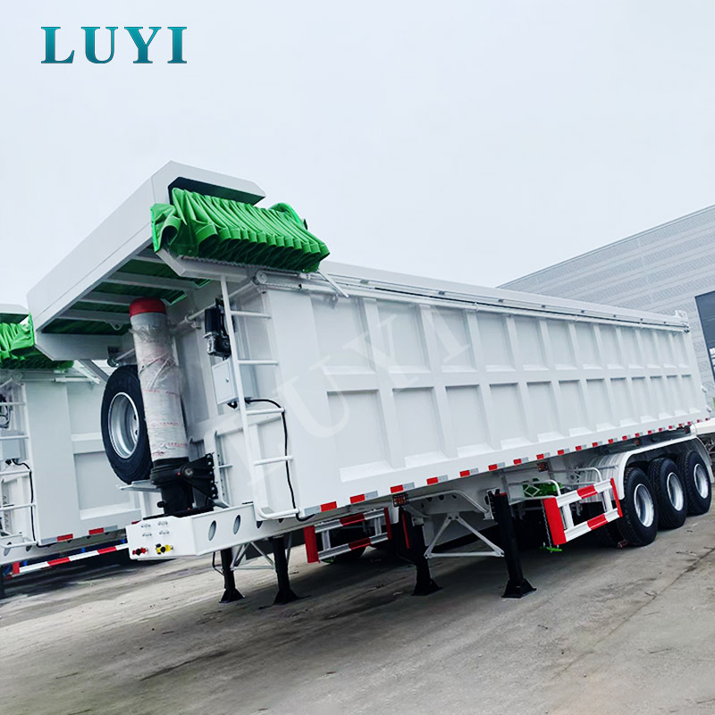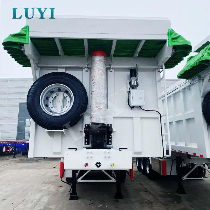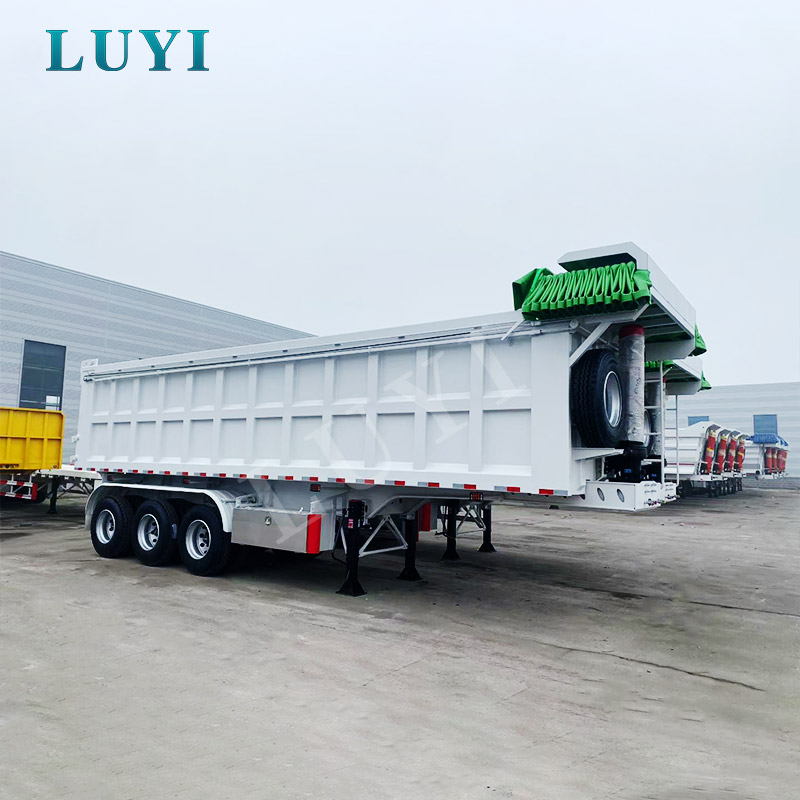 O semirreboque basculante traseiro basculante branco de 3 eixos da marca LUYI, proveniente de fabricação de alta qualidade em Shandong, China, é um reboque de caminhão eficiente especialmente projetado para transporte de cargas pesadas. O produto é feito de aço de alta resistência, apresentando uma estrutura estável e durável. Possui dimensões de 1300mm × 2500mm × 4000mm e capacidade de carga máxima de 100 toneladas, atendendo facilmente às necessidades de transporte de diversos produtos pesados.