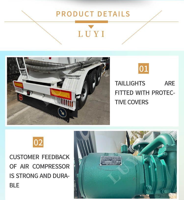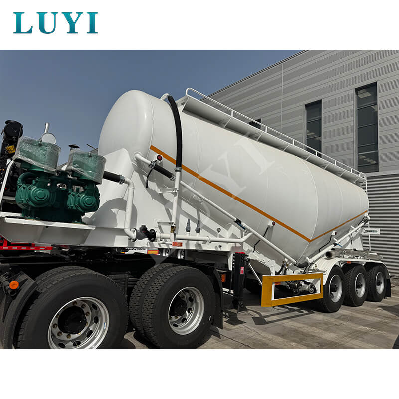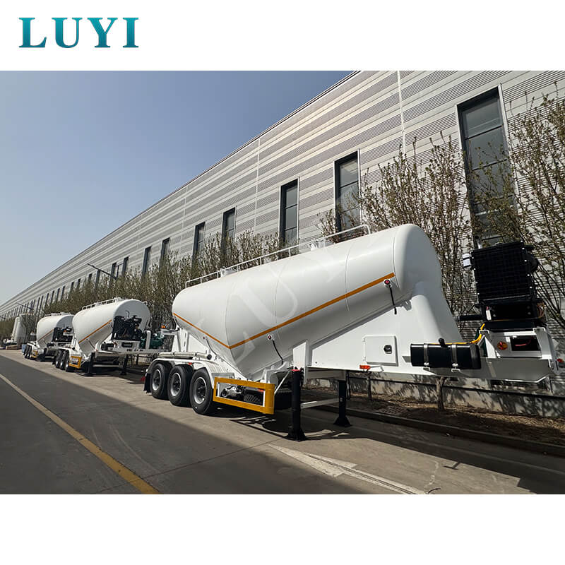 O caminhão-tanque de cimento LUYI de 3 eixos e 30-60 metros cúbicos, também conhecido como caminhão tanque de pólvora, é originário da província de Shandong, China. É um semirreboque de alta eficiência especialmente projetado para o transporte de pó de cimento a granel, atendendo com precisão às necessidades dos cenários de transporte de cargas.