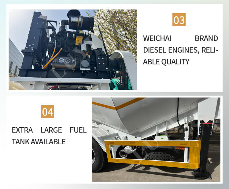 A carroceria do caminhão-tanque é feita de aço de alta qualidade, com canal de aço 16# utilizado nas vigas laterais, garantindo uma estrutura robusta e durável. Sua carga útil máxima efetiva ultrapassa 30.000 kg, e a capacidade de carga varia de 30 a 60 toneladas, podendo se adaptar com flexibilidade às necessidades de diferentes volumes de transporte. Equipado com uma estrutura de 3 eixos, combinado com pneus 12R22,5 e jantes 9,00-22,5, e apoiado por uma suspensão pneumática mecânica, funciona de forma estável e pode lidar com diversas condições de estrada. Os estabilizadores padrão de 28 toneladas garantem suporte firme durante o estacionamento. Além disso, ele vem com um período de garantia de 6 anos, reduzindo de forma abrangente as preocupações de uso e fornecendo suporte de equipamento confiável e de longo prazo para o transporte de pó de cimento a granel.