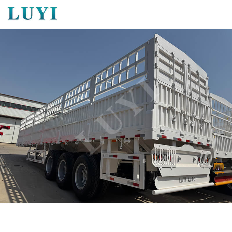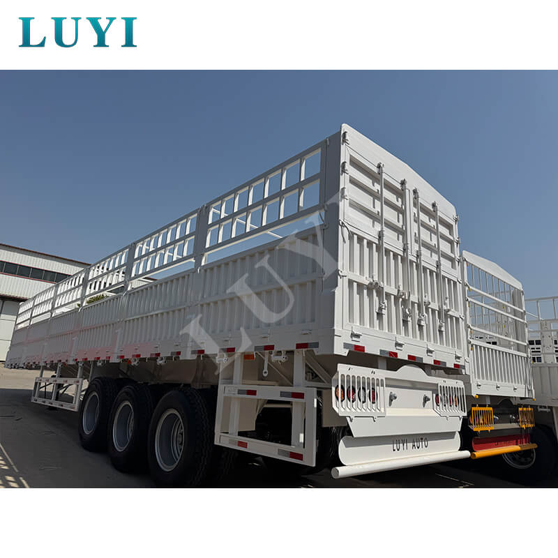 Feito principalmente de aço de alta qualidade, o trailer possui uma estrutura sólida e durável. Sua carga efetiva máxima chega a 100 toneladas, e a capacidade de carga normal varia de 80 a 100 toneladas. Com dimensões de 1250025002000 mm, está equipado com 3 eixos das marcas FUWA ou BPW, podendo escolher com flexibilidade a suspensão mecânica ou pneumática para se adaptar às diferentes condições da estrada. O pino mestre oferece opções JOST de 2 polegadas (50 mm) ou 3,5 polegadas (90 mm), as pernas de suporte são de especificação padrão de 28 toneladas e os pneus podem ser dos modelos 12R22.5, 12.00R20 ou 11R22.5. Possui funções abrangentes, capaz de transportar animais, mercadorias em geral e contêineres, e sua cor também pode ser customizada conforme a necessidade, proporcionando uma solução confiável para diversos cenários de frete.