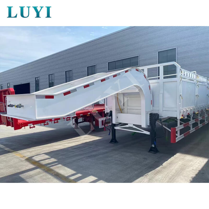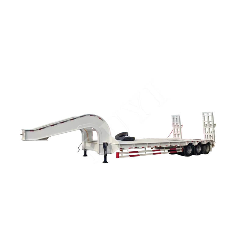 Equipado com 3 eixos e suspensão pneumática ou de lâmina opcional, proporciona excelente estabilidade de condução e desempenho de absorção de choque, com carga útil máxima efetiva e capacidade de carga máxima atingindo 120 toneladas. Adotando um design de pescoço de ganso removível e combinado com escadas hidráulicas ou manuais, aumenta muito a conveniência de carga e descarga de carga. Ele é configurado com pernas de pouso de 28 toneladas para suporte estável, oferece cores personalizáveis e vem com garantia de 6 anos. CCom sua forte capacidade de carga e design fácil de usar, torna-se a escolha ideal para transporte pesado.