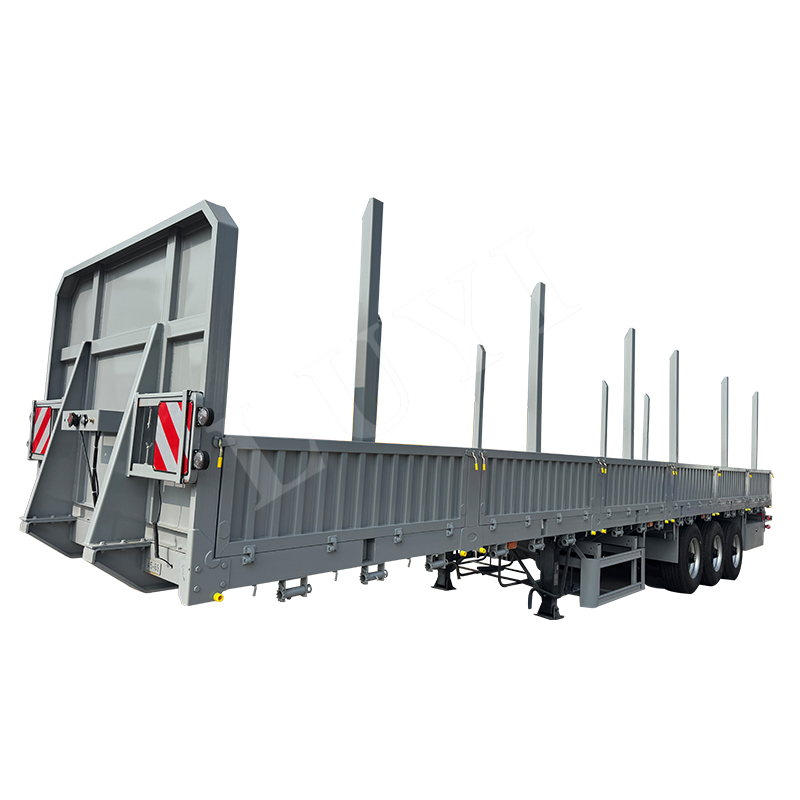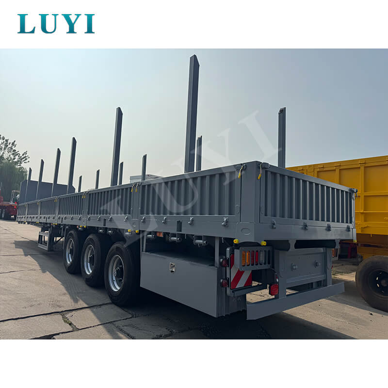 O semirreboque de parede lateral de 3 eixos com colunas da LUYI, marca sediada em Shandong, China, é a escolha ideal para transporte de carga a granel e contêineres. Construído com aço de alta qualidade, apresenta dimensões precisas de 12500x2500x1600mm e uma capacidade de carga máxima de 60 toneladas, cuja poderosa capacidade de carga pode facilmente atender a diversas necessidades de transporte pesado.