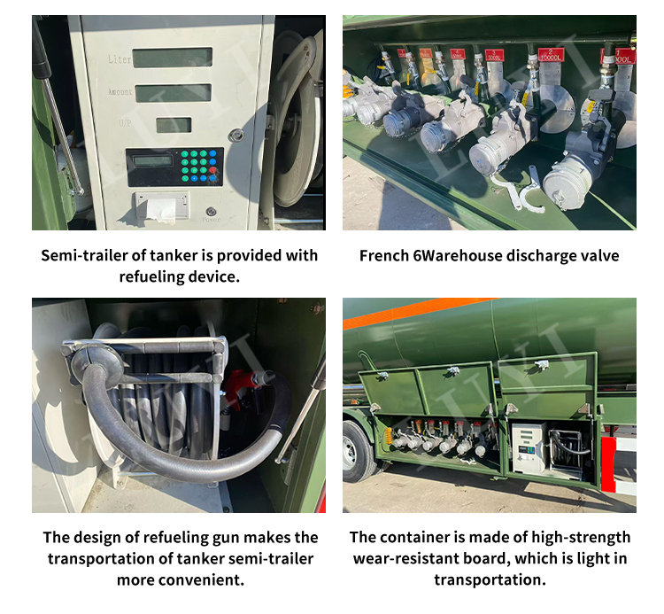 Equipado com eixos Fuwa/BPW/CIMC 13/16 Ton e pneus 12r22,5, oferece duas opções de suspensão: mecânica ou pneumática, ostentando uma impressionante capacidade de carga máxima de 56.000L. O veículo é equipado com trem de pouso de 28 toneladas, pino mestre 50# ou 90# e sistema de freio de linha dupla para garantir a segurança ao dirigir.