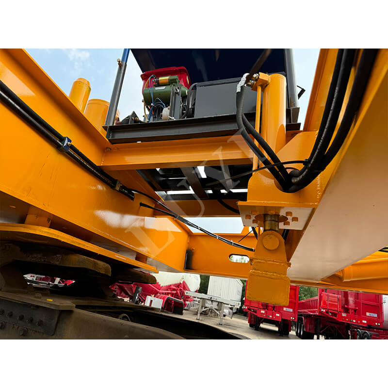 Este semirreboque baixo tipo pescoço de ganso removível de 4 eixos e 60/80 toneladas é um reboque de caminhão profissional produzido na província de Shandong, China. Fabricado em aço de alta qualidade, possui excelente desempenho de carga, com carga útil máxima efetiva de mais de 30.000 quilos e faixa de carga de 80-120 toneladas, especialmente projetado para transporte de equipamentos pesados.