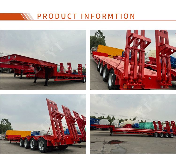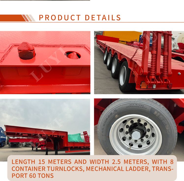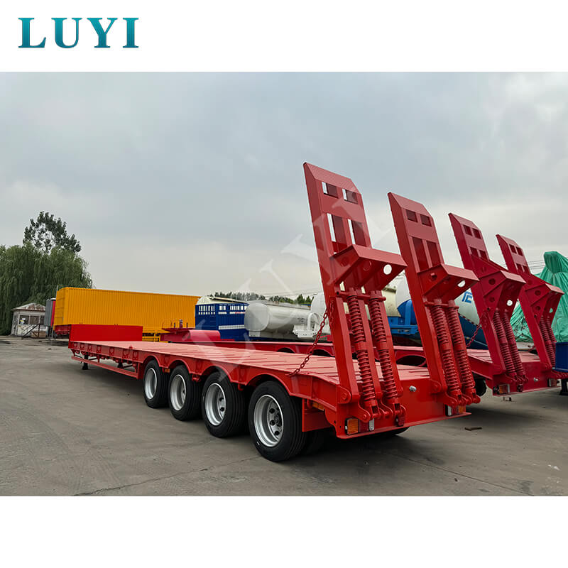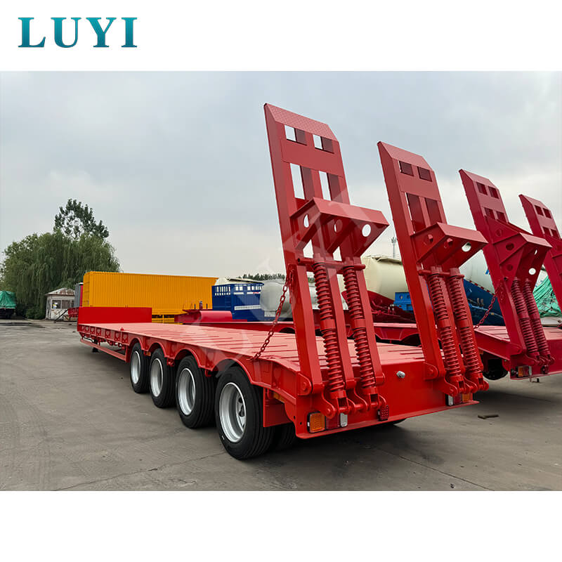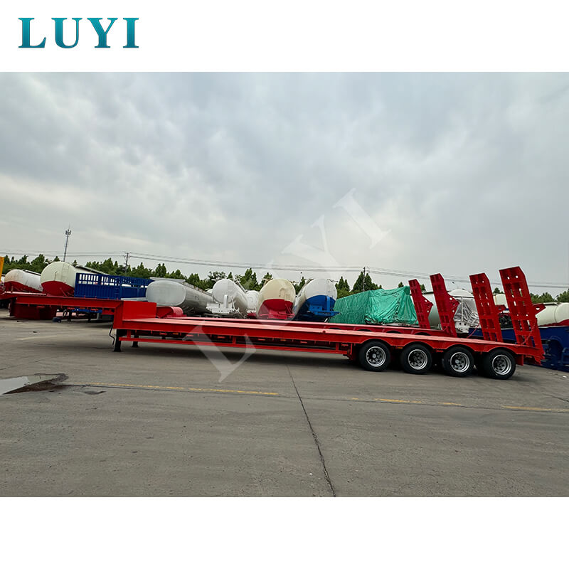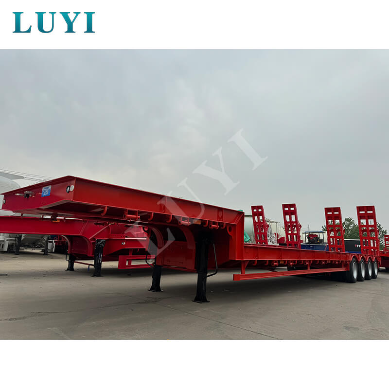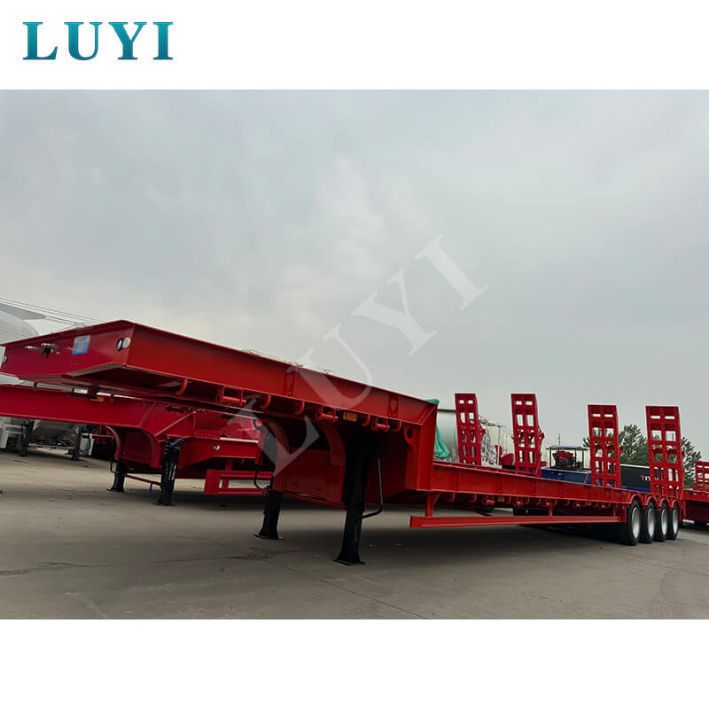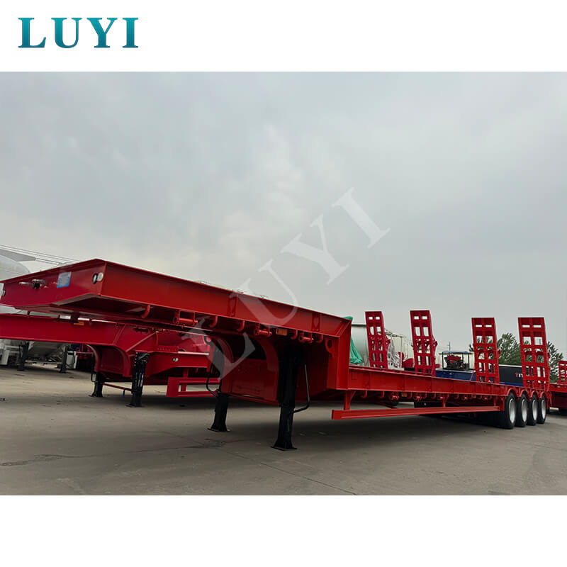 O semi-reboque Luyi Gooseneck Lowboy de 4 eixos e 60 toneladas, produzido na província de Shandong, China, é um reboque de caminhão dedicado ao transporte de carga pesada. A carroceria do reboque é feita de aço de alta qualidade, apresentando uma estrutura robusta e durável. Sua carga útil máxima efetiva não apenas excede 30.000 kg, mas também atinge 100 toneladas, transportando facilmente vários produtos pesados e atendendo às necessidades de transporte de alta intensidade.