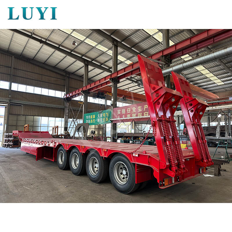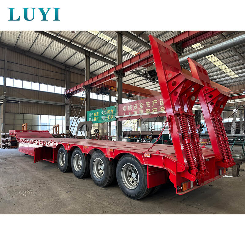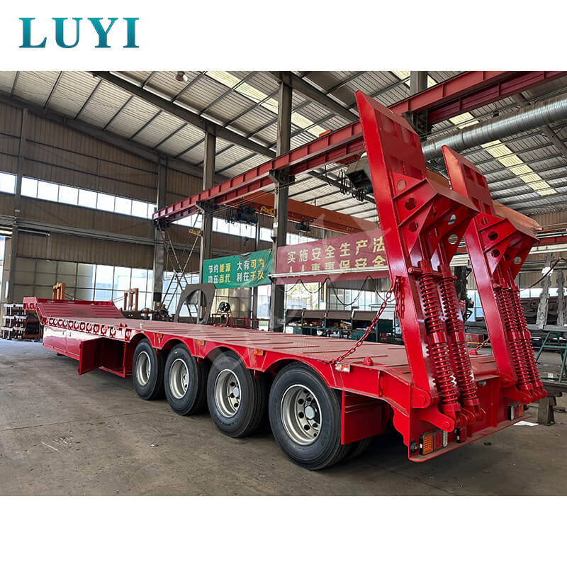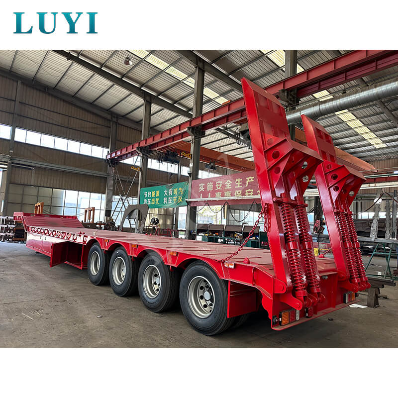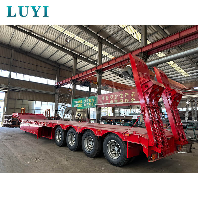 O semirreboque Lowboy Luyi de 4 eixos e 60 toneladas, originário da província de Shandong, China, é um caminhão reboque de alto desempenho projetado especificamente para o transporte de equipamentos pesados, mercadorias em contêineres e máquinas. Equipada com escada hidráulica, permite cargas e descargas cómodas e eficientes.