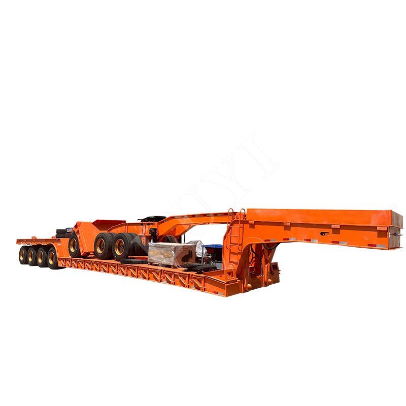 O semirreboque baixo pescoço de ganso destacável de 4 eixos da LUYI VEHICLE, de Shandong, China, é uma solução confiável de transporte pesado com uma carga útil máxima de 80 toneladas. Ele mede 18.000 × 2.500 × 1.500 mm, adaptando-se perfeitamente às necessidades de aplicação de reboque de caminhão.