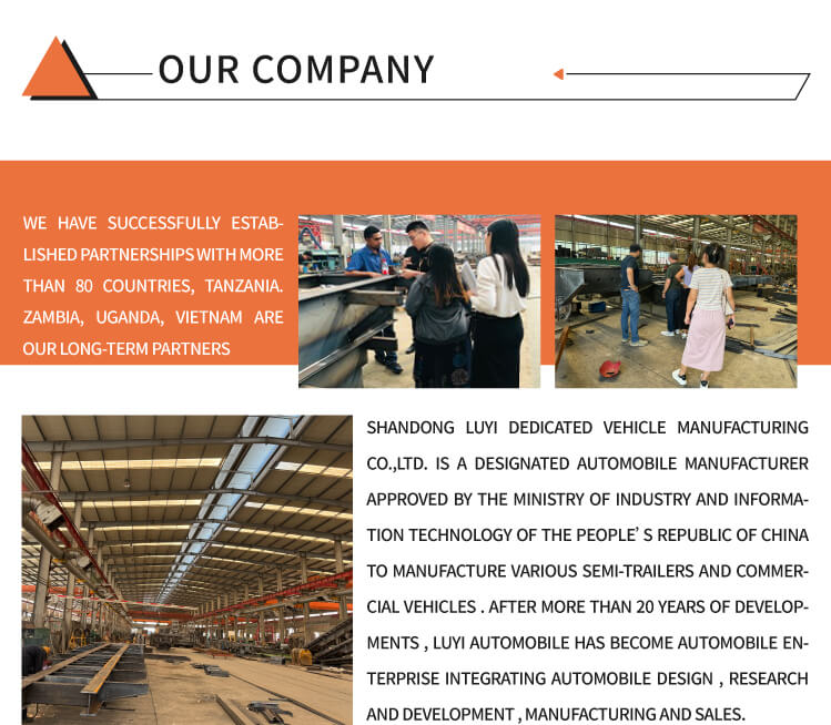 Fabricada em aço de alta qualidade, sua viga principal utiliza aço T700/Q345 para maior capacidade de carga. É equipado com eixos da marca Fuwa de 13 toneladas e um sistema de suspensão mecânica estável, combinado com opções de pneus 11.00r20, 12r22.5 ou 315/385 para se adaptar às diferentes condições da estrada. O sistema de freio de linha dupla garante segurança ao dirigir, enquanto o trem de pouso padrão de 28 toneladas e os pinos mestre JOST de 2 polegadas (50 mm)/3,5 polegadas (90 mm) garantem uma operação conveniente. A cor da carroceria oferece suporte à personalização do cliente, atendendo às demandas de uso personalizadas.