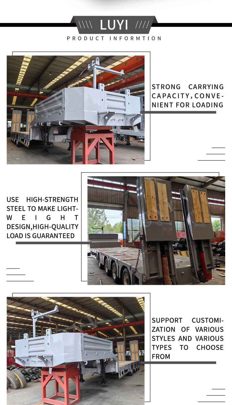 semirreboque luyi Manufacturing Co., LTD é especializada na produção de todos os tipos de semirreboques, caminhões tanque de cimento, caminhões tanque de óleo, semirreboques basculantes, semirreboques de contêineres, semirreboques de tela plana, semirreboques de esqueleto, semirreboques de celeiros, painel baixo