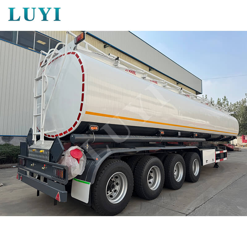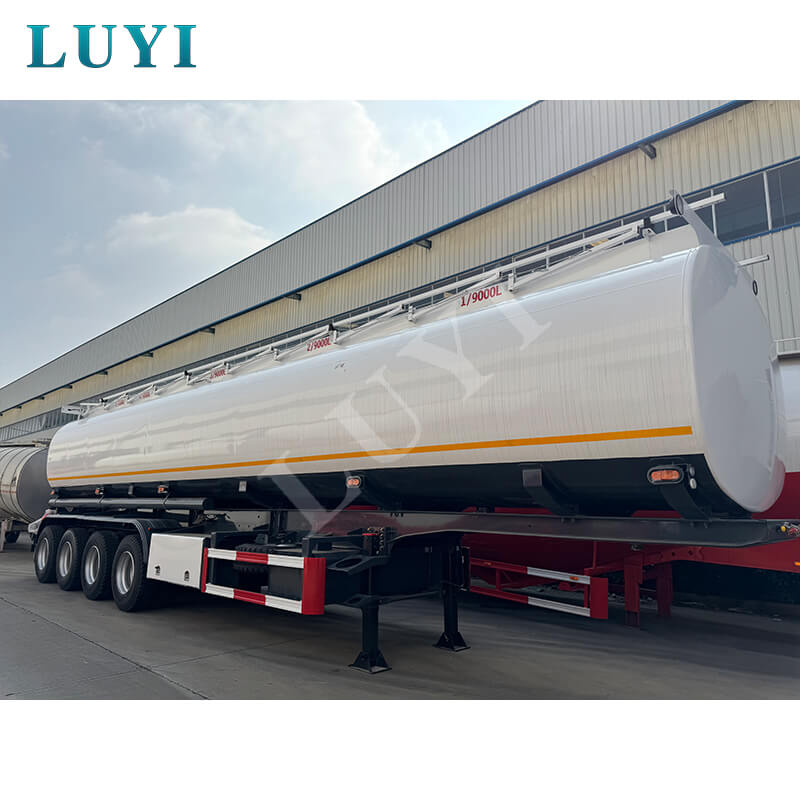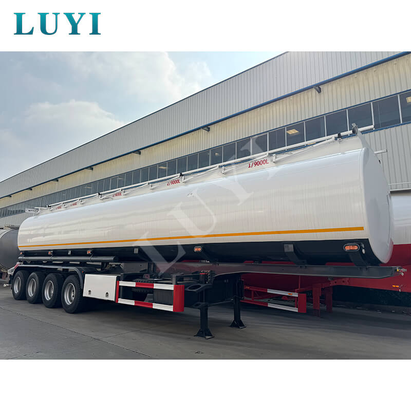 Luyi 4 eixos customizáveis de aço carbono 45.000 litros 5 tanques semirreboque petroleiro, originário da província de Shandong, China, é um semirreboque petroleiro de alta qualidade especialmente projetado para transporte de combustível. Todo o veículo é feito de aço carbono, apresentando robustez e resistência à corrosão. Com carga útil máxima efetiva de mais de 30.000 kg e capacidade de carga que varia de 20 a 60 metros cúbicos, atende com flexibilidade a diferentes necessidades de transporte de combustível.