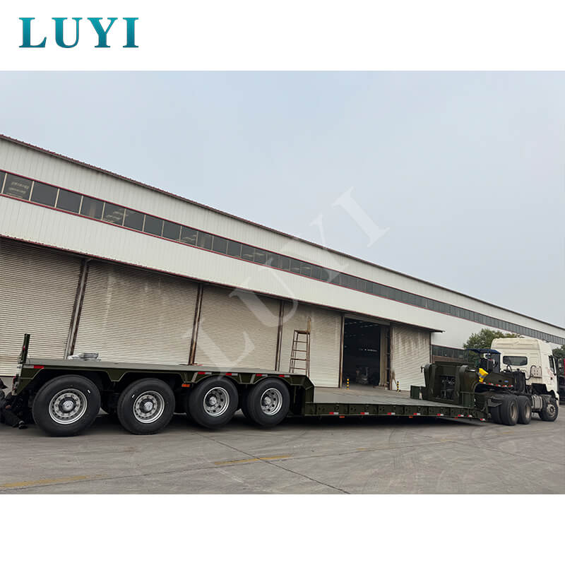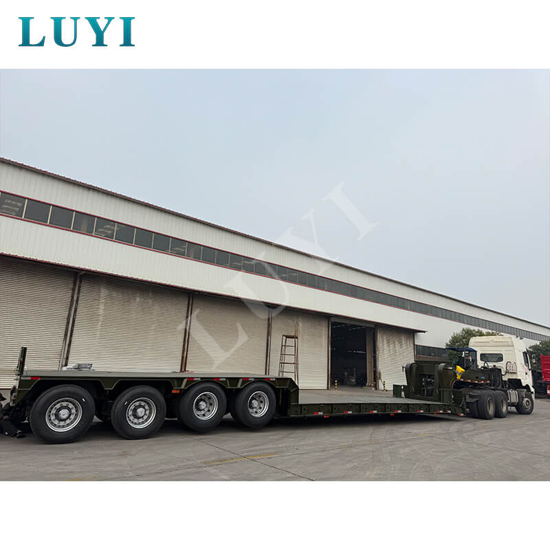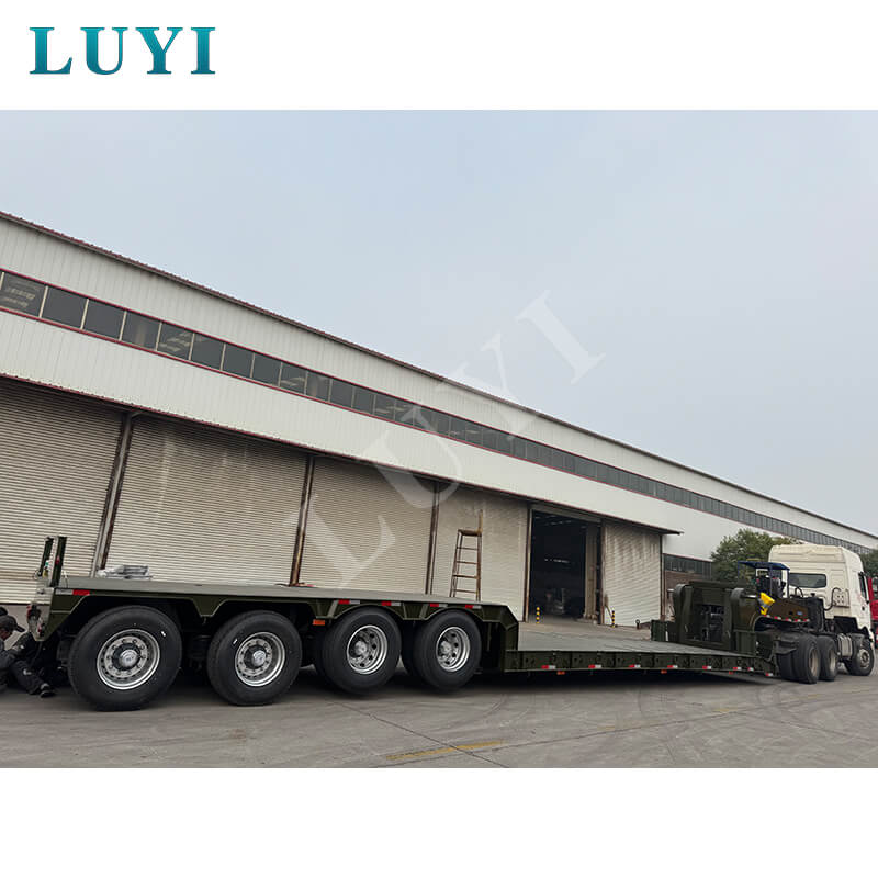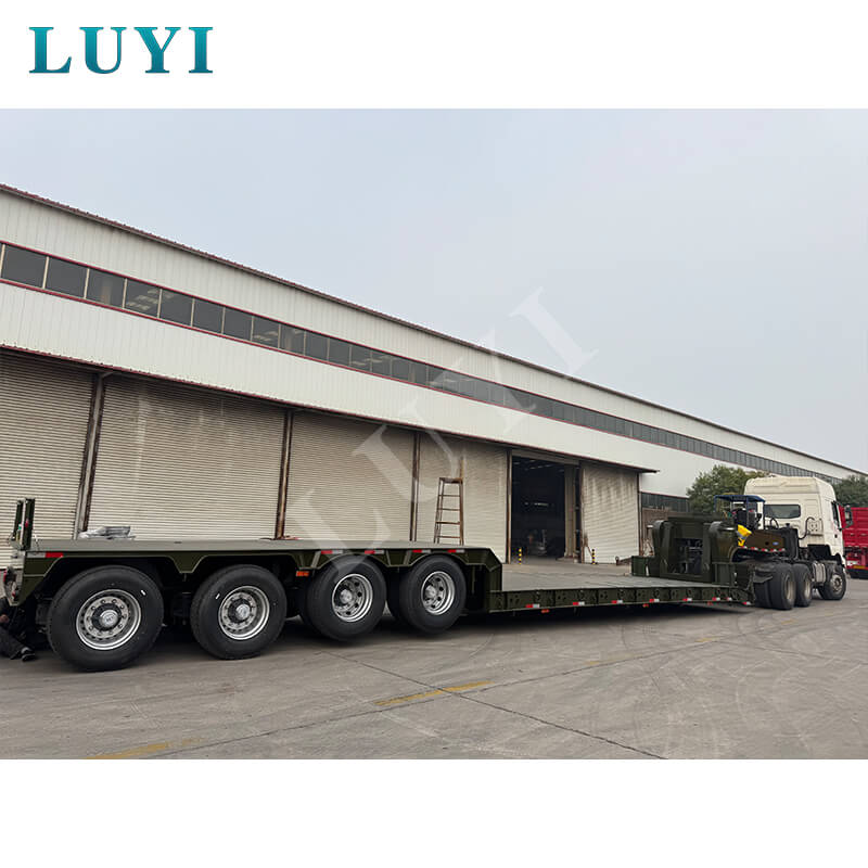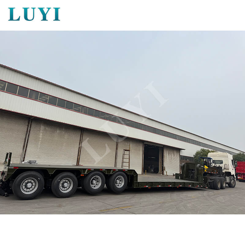 O semirreboque Luyi de 4 eixos destacável pescoço de ganso de 150 toneladas, originário da província de Shandong, China, é um semirreboque de alta qualidade especialmente projetado para transporte de equipamentos pesados. Construído em aço de alta qualidade, possui excelente capacidade de carga, com carga útil máxima efetiva de 100 toneladas, permitindo o transporte estável de diversos tipos de equipamentos pesados.