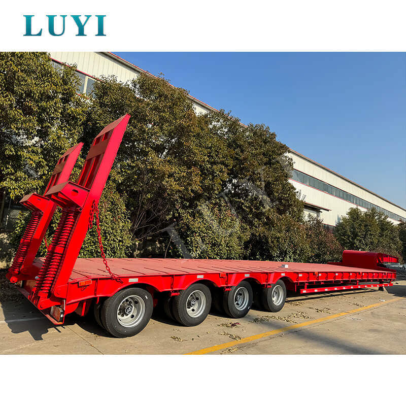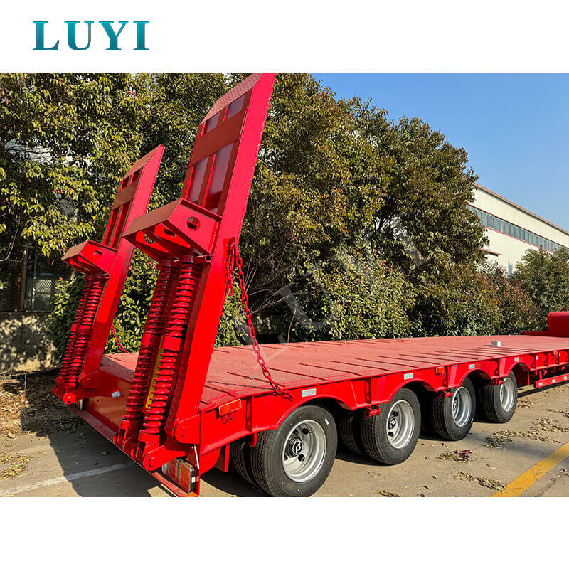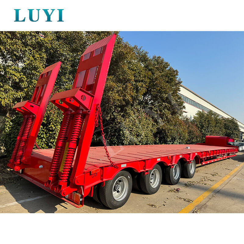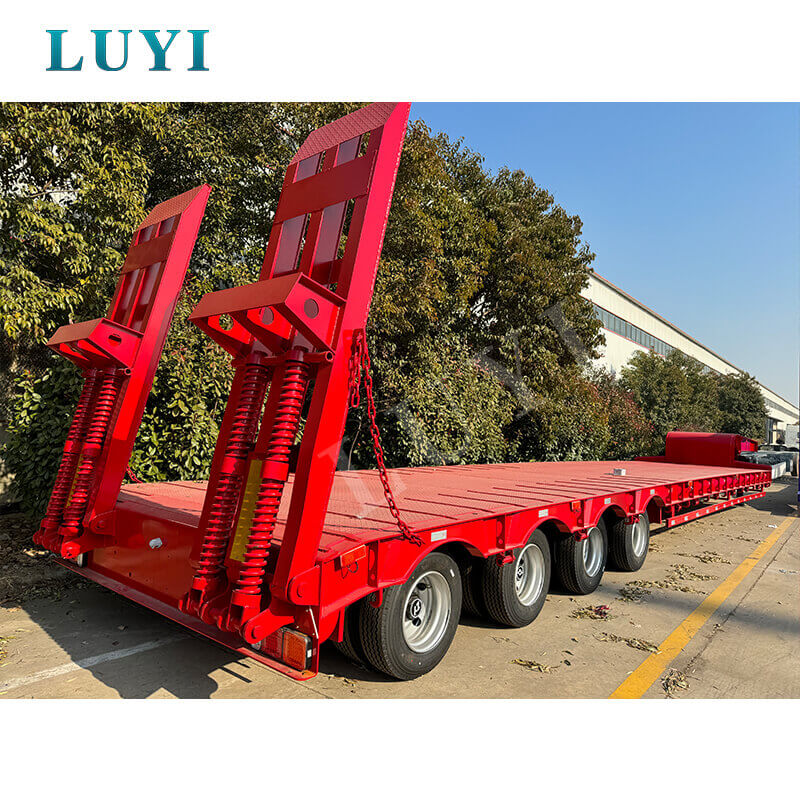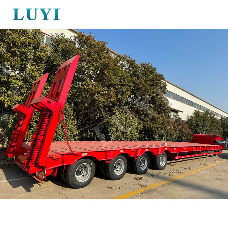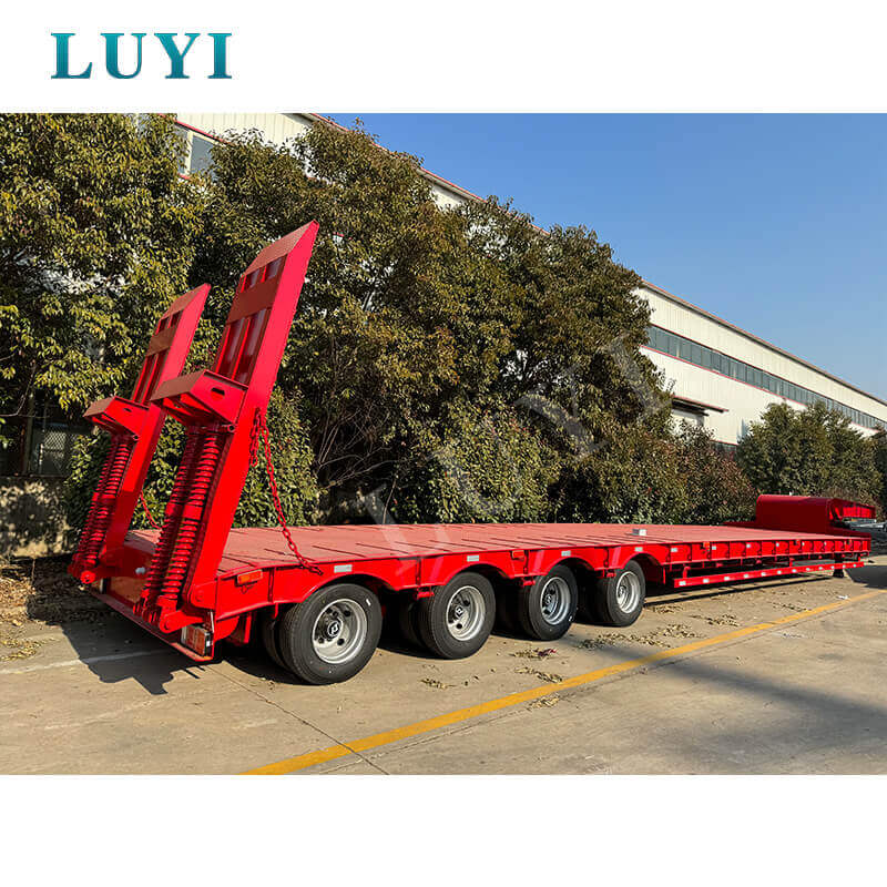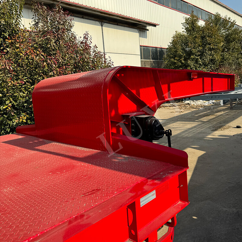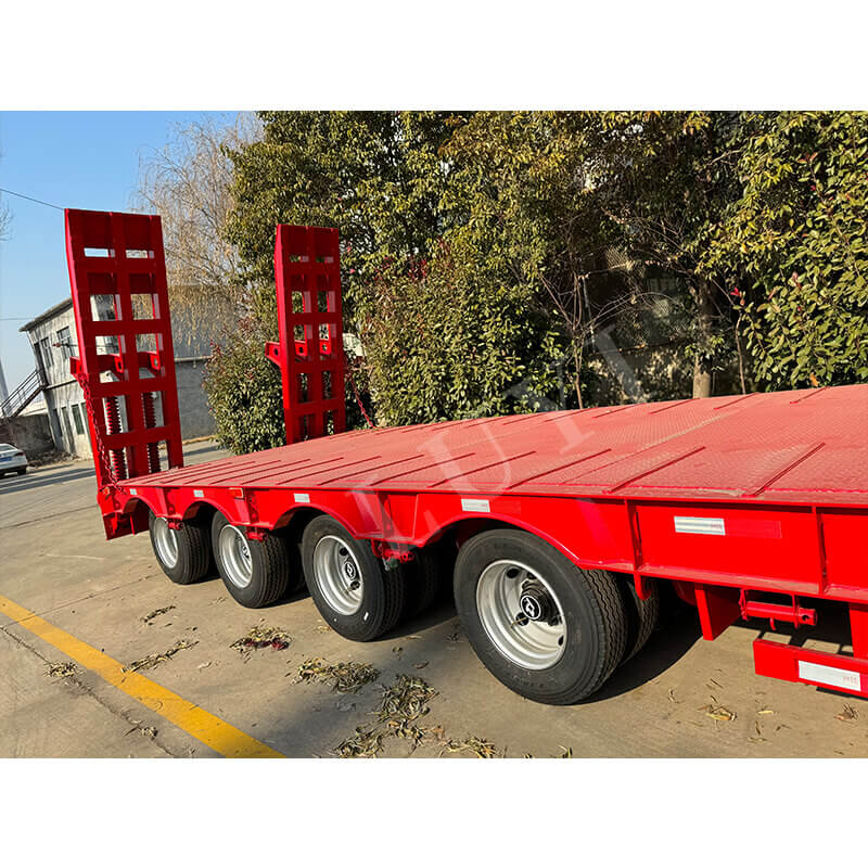 O semirreboque baixo pescoço de ganso de 4 eixos é um equipamento semirreboque profissional especialmente projetado para o transporte de equipamentos de engenharia pesada e maquinários de grande porte, adequado para infraestrutura, mineração, construção de engenharia e outros cenários. A estrutura pescoço de ganso reduz efetivamente a altura da plataforma de carga e, combinada com o design de cama baixa, pode transportar facilmente equipamentos ultralargos e ultraaltos, como escavadeiras, carregadeiras e rolos compactadores, evitando problemas de tráfego causados por restrições de altura durante o transporte; o layout de 4 eixos combinado com uma carroceria de aço de alta resistência oferece forte capacidade de carga, que pode suportar de forma estável o peso de equipamentos pesados e reduzir o risco de deformação da carroceria durante a condução.