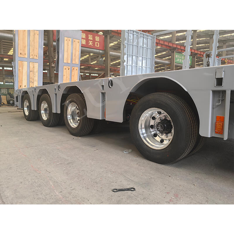 As dimensões do trailer são personalizáveis e oferece opções de 2/3/4 eixos. Equipado com sistema de suspensão pneumática e pneus 12R22.5, garante uma condução suave e confortável. As pernas de suporte padrão de 28 toneladas fornecem suporte confiável, enquanto o sistema de freio de linha dupla garante segurança ao dirigir. As especificações do aro são peças de 8,0/9,0×8/12/16, e o pino mestre tem opções JOST de 2 polegadas (50 mm) ou 3,5 polegadas (90 mm) para forte adaptabilidade. O cliente pode escolher a cor, equilibrando praticidade e personalização, sendo a escolha ideal para um transporte eficiente.