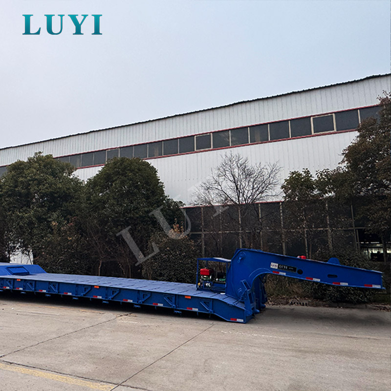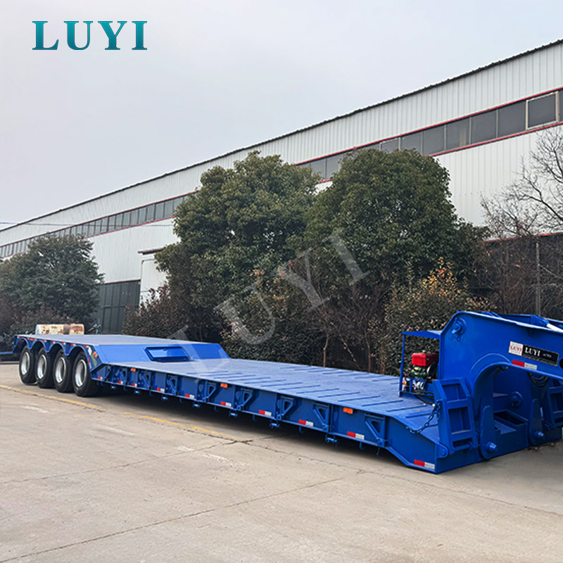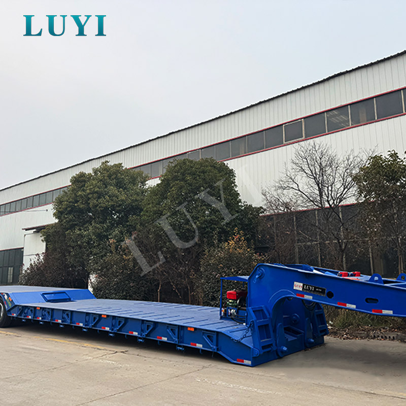 O semirreboque baixo pescoço de ganso de 4 eixos LUYI, originário de Shandong, China, é um semirreboque de alta qualidade especialmente projetado para transporte de cargas pesadas. Construído com aço premium, tem tara de apenas 6.350KG, capacidade de carga nominal de 50.000KG e carga útil máxima variando de 30T a 200T, proporcionando desempenho de suporte de carga excepcional.