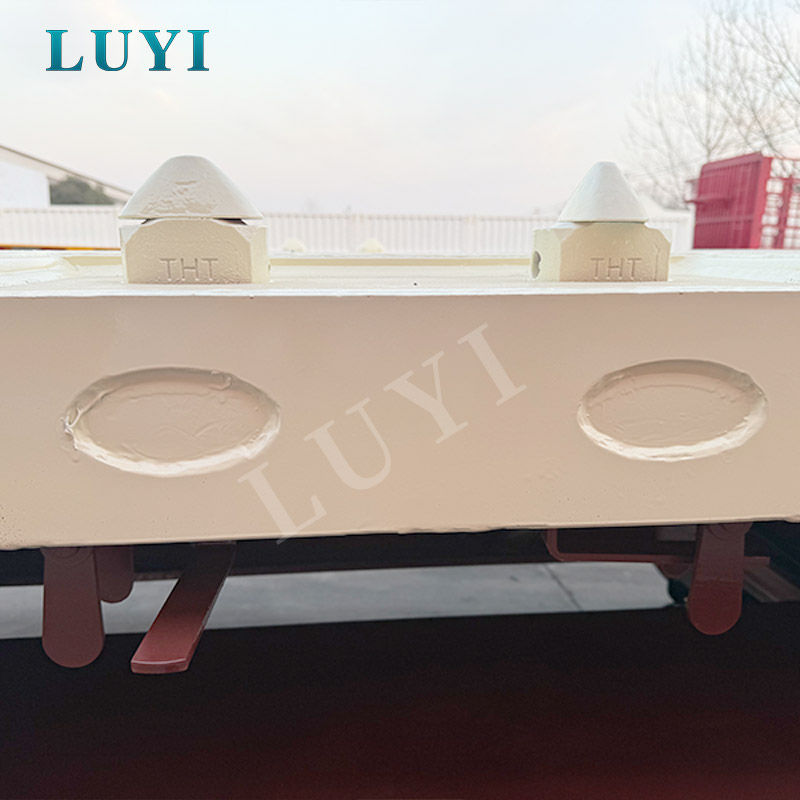 Manuseio Especializado de Contêineres: A plataforma é equipada com precisão com 12 conjuntos de travas de torção ISO retráteis e de alta resistência, garantindo que os contêineres sejam fixados com segurança para um transporte seguro e estável.