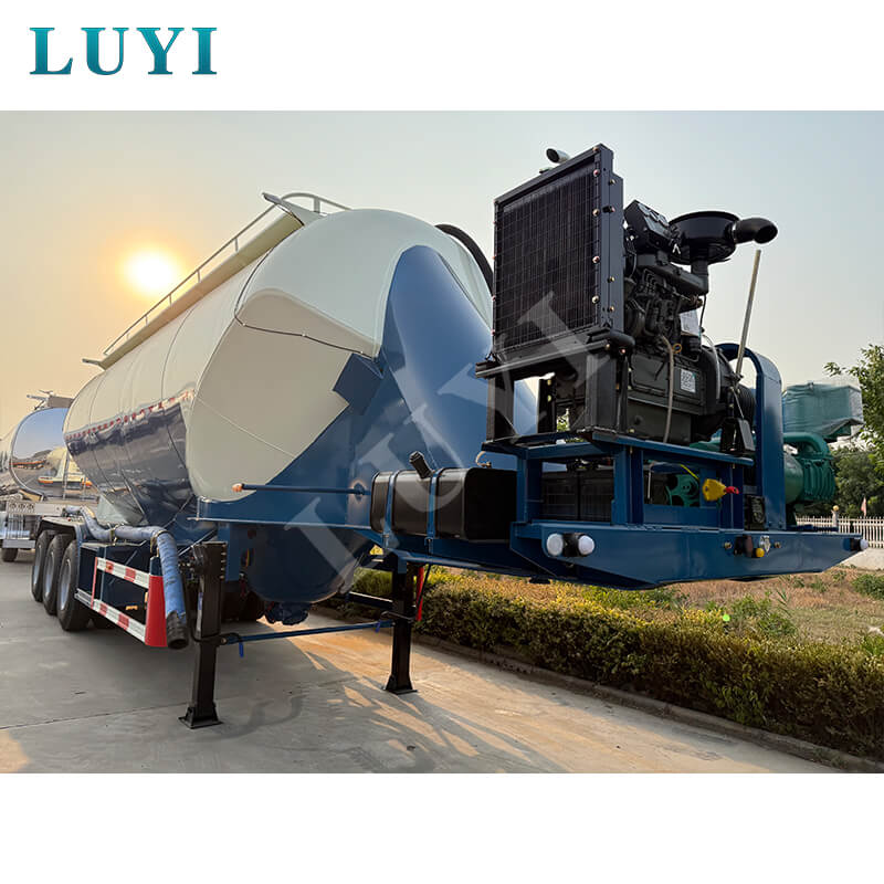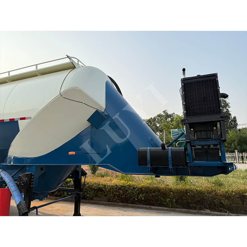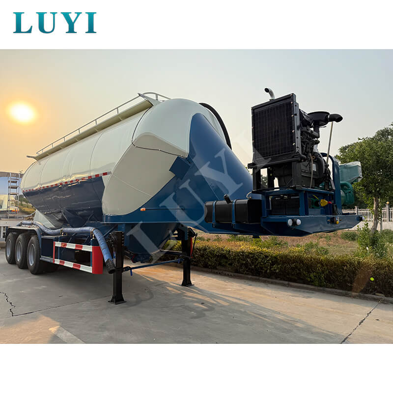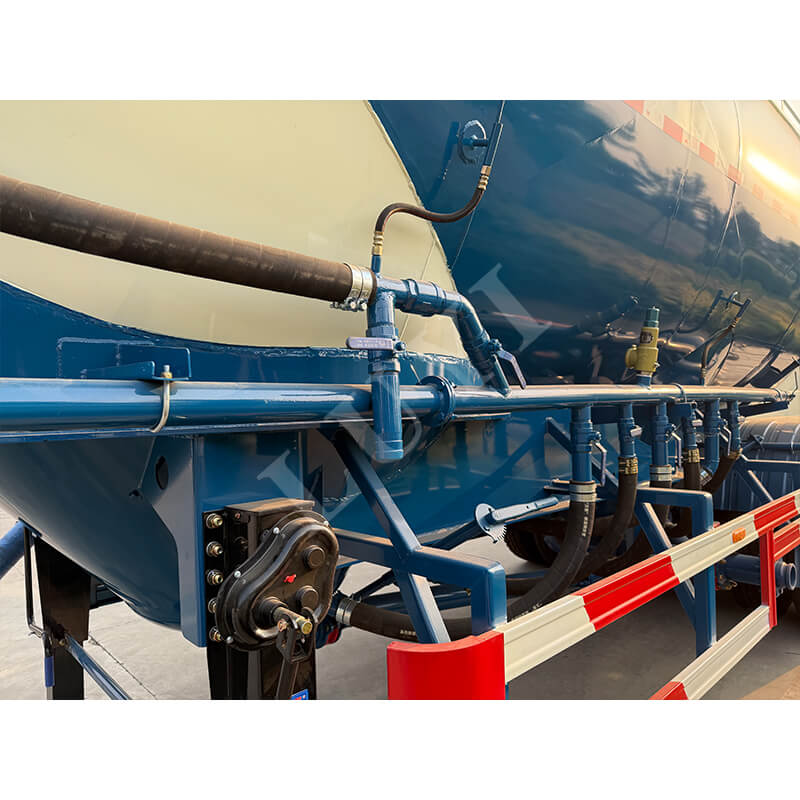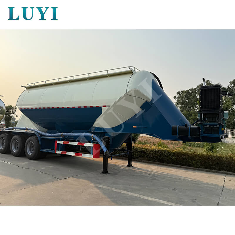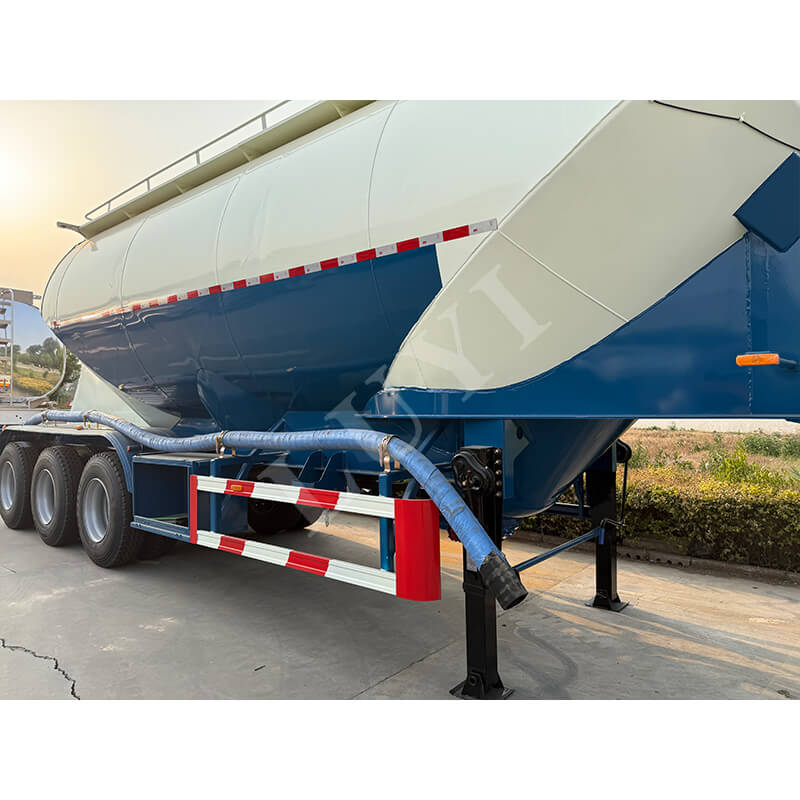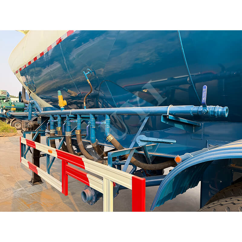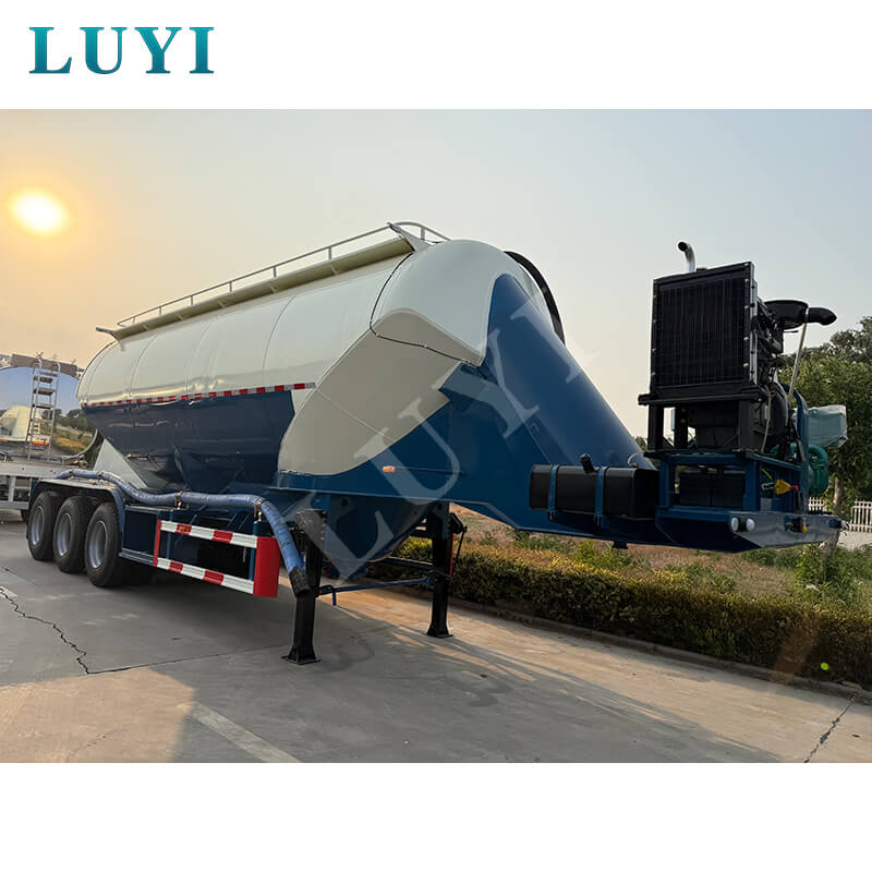 O semirreboque tanque de cimento a granel tipo V Luyi de 48 metros cúbicos (também conhecido como caminhão tanque de pó), originário da província de Shandong, China, é um semirreboque de alta qualidade especialmente projetado para transporte de pó de cimento a granel. Todo o veículo é feito de aço, com canal de aço 16# utilizado nas vigas laterais, garantindo uma estrutura robusta e durável. Possui capacidade de carga efetiva máxima de 48 metros cúbicos, o que pode atender com eficiência às necessidades de transporte de grande capacidade de cimento a granel.