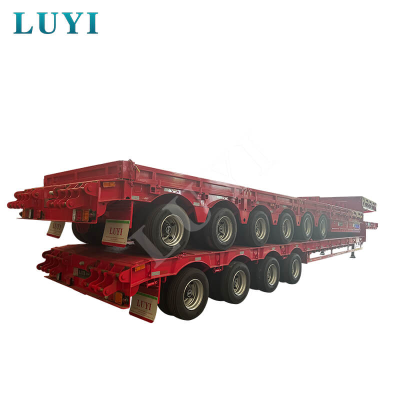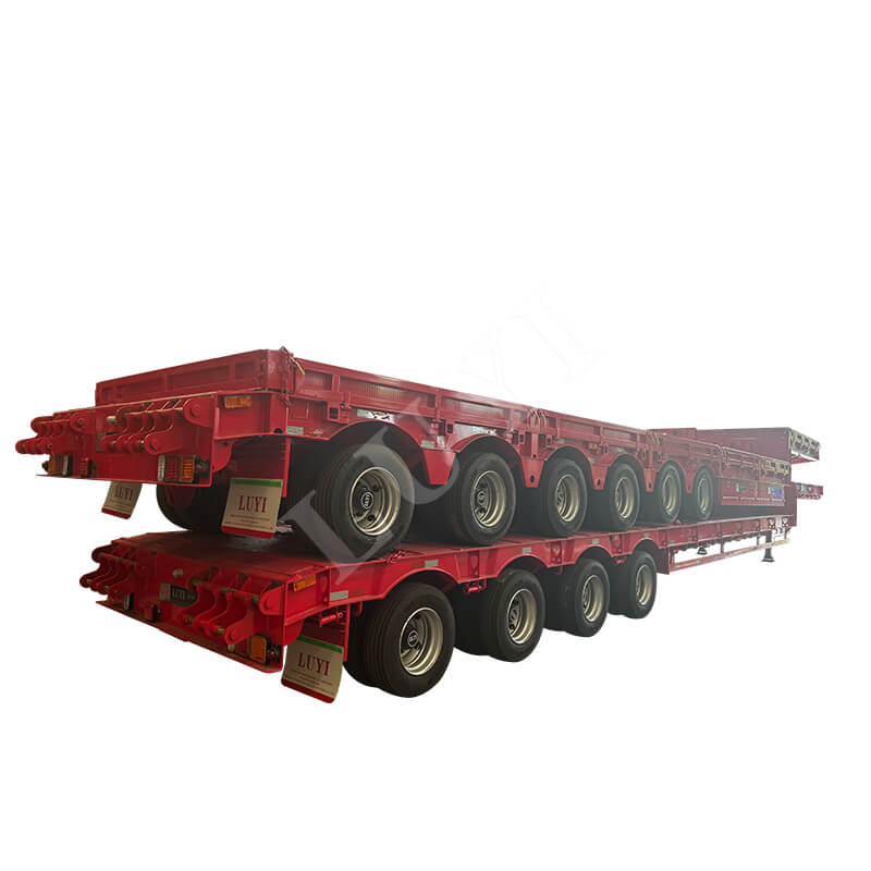 Semi-reboque de cama baixa retrátil de contêiner de aço de 6 eixos de 80-100 toneladas