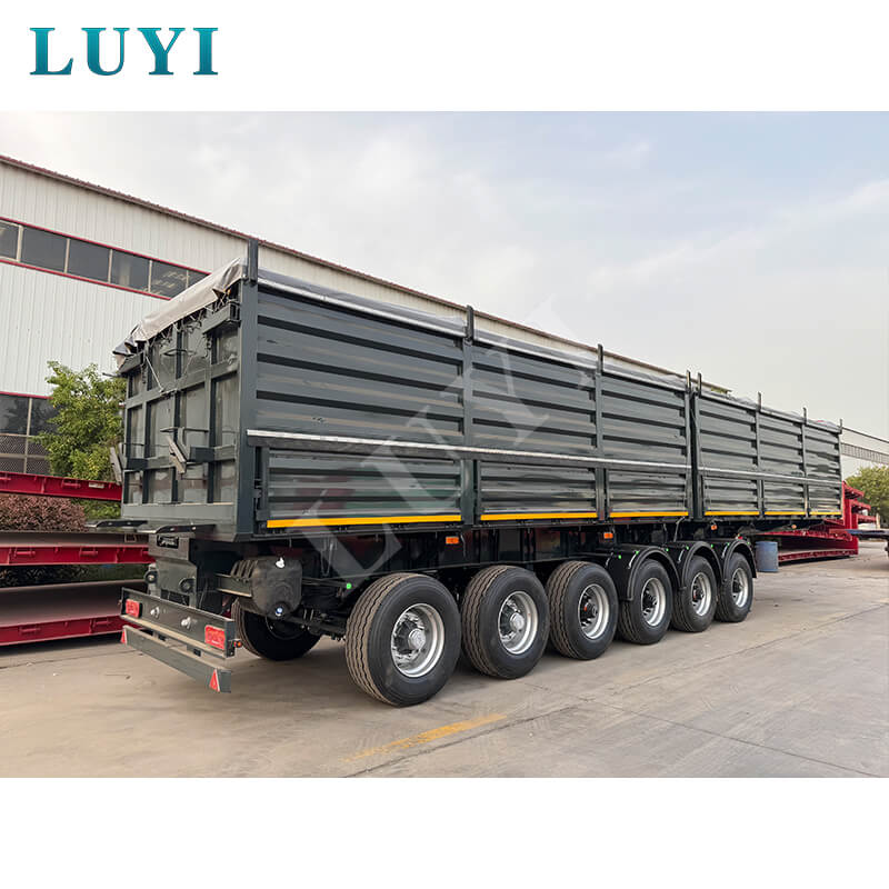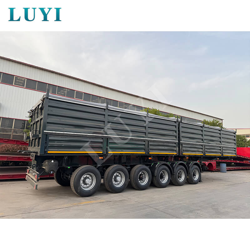 O semirreboque de estaca de 6 eixos Luyi, também conhecido como reboque de caminhão-plataforma, vem da província de Shandong, China. Fabricado em aço de alta qualidade, oferece desempenho confiável para transporte pesado, com carga útil máxima efetiva de 60 toneladas, ideal para transporte de contêineres e mercadorias a granel.