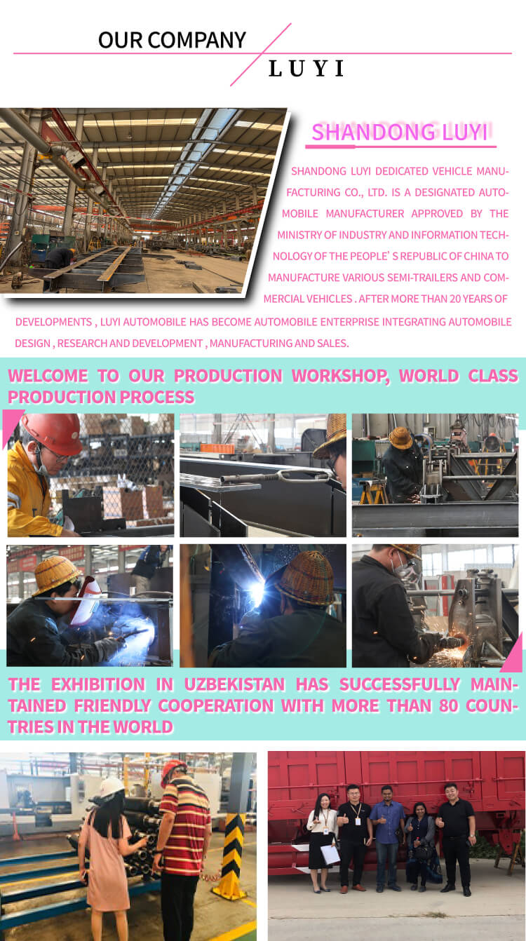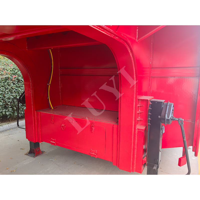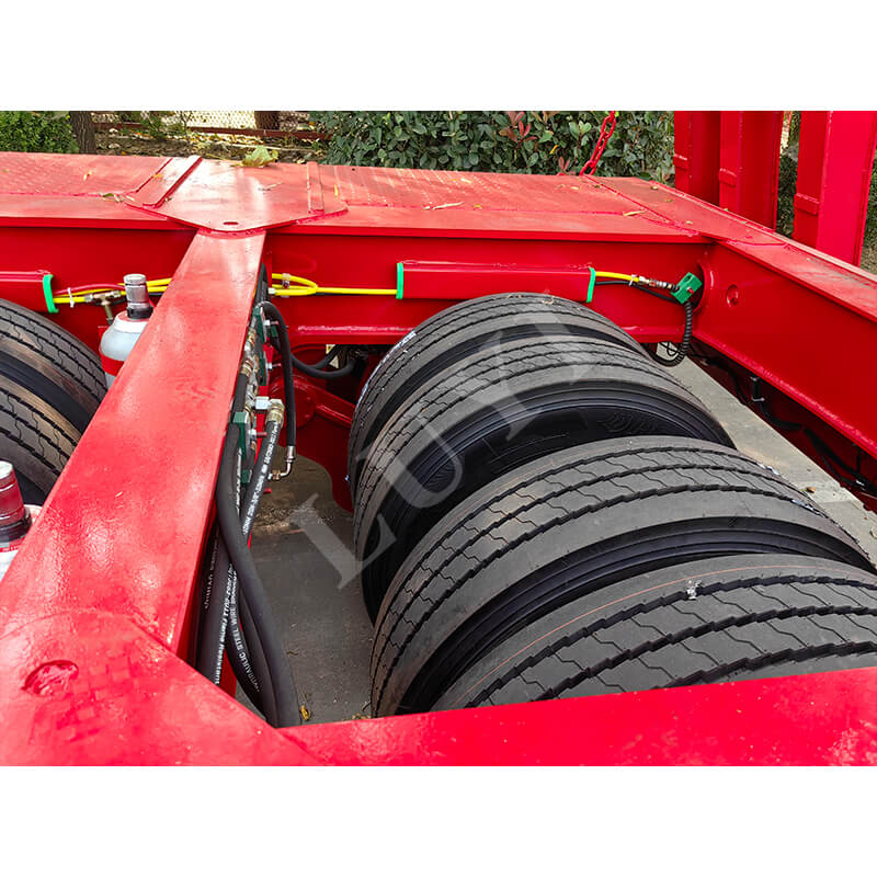 O semirreboque telescópico Gooseneck Lowboy de 6 eixos e 100 toneladas LUYI, produzido na província de Shandong, China, é um reboque de caminhão de alto desempenho. Fabricada em aço, sua viga principal mede 14×16×8 mm, apresentando estrutura robusta. Com peso próprio de 8,5 toneladas, peso de carga de 150 a 200 toneladas e carga útil máxima efetiva de mais de 30.000 kg, ele lida facilmente com transporte pesado.