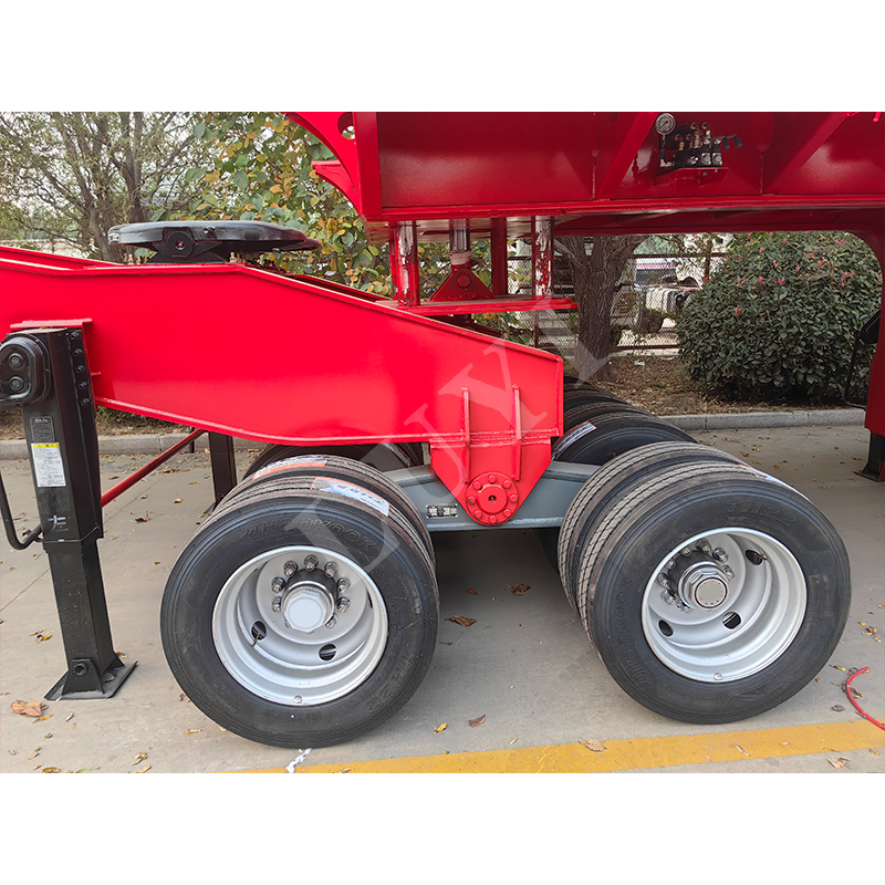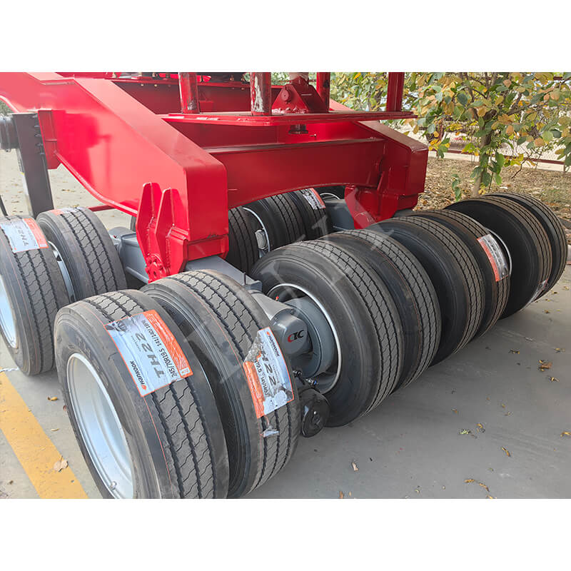 O reboque tem dimensões de 18.000×2.500 mm e sua placa de trabalho totaliza 18 metros (incluindo seção telescópica de 5 metros), adaptando-se com flexibilidade a cargas de diferentes comprimentos. Equipado com 22 eixos (13 toneladas cada) e trem de pouso de 28 toneladas, garante condução estável e suporte seguro. Ele usa pneus 12R22.5 uniformemente, com opções de pino mestre 50# ou 90# e um design de pescoço de ganso fixo, equilibrando praticidade e confiabilidade para atender às diversas necessidades de transporte.
