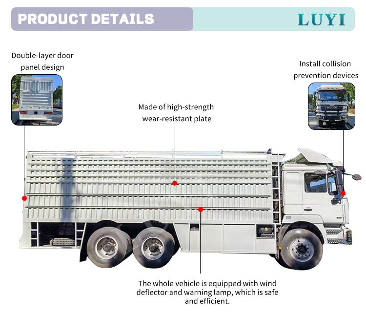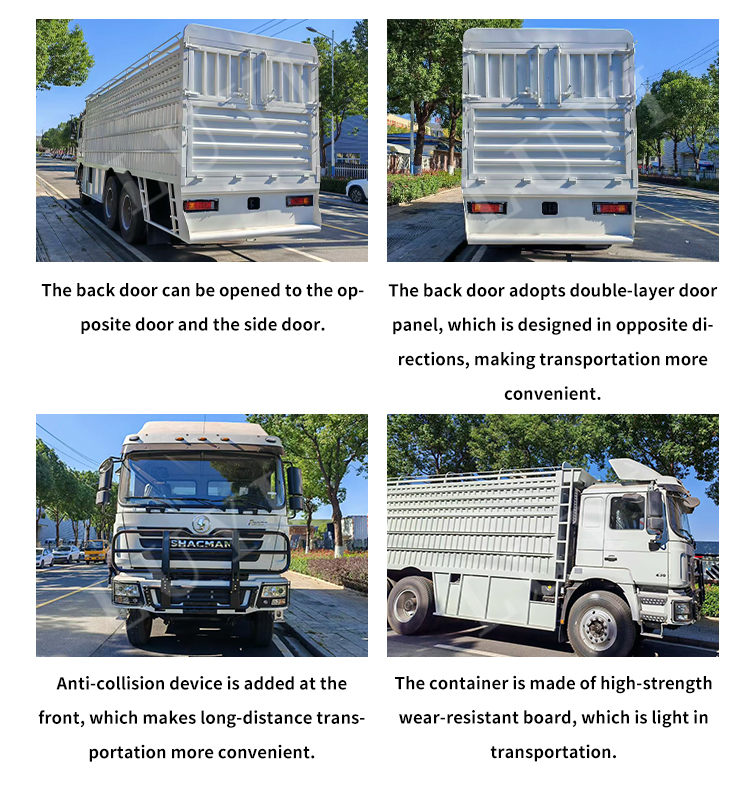 Com uma capacidade de carga nominal de 21-30T e um peso bruto do veículo de 10.001-15.000kg, ele pode lidar facilmente com várias tarefas de carga. O tanque de carga mede 5,62,51,5m, com comprimento ajustável entre 5,3-6,2m. Ele é combinado com uma caixa de câmbio manual SINOTRUK e pneus duráveis 12.00R20, suportando personalização LHD e RHD, e a cor da carroceria pode ser adaptada às necessidades do cliente.