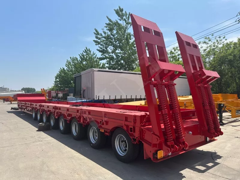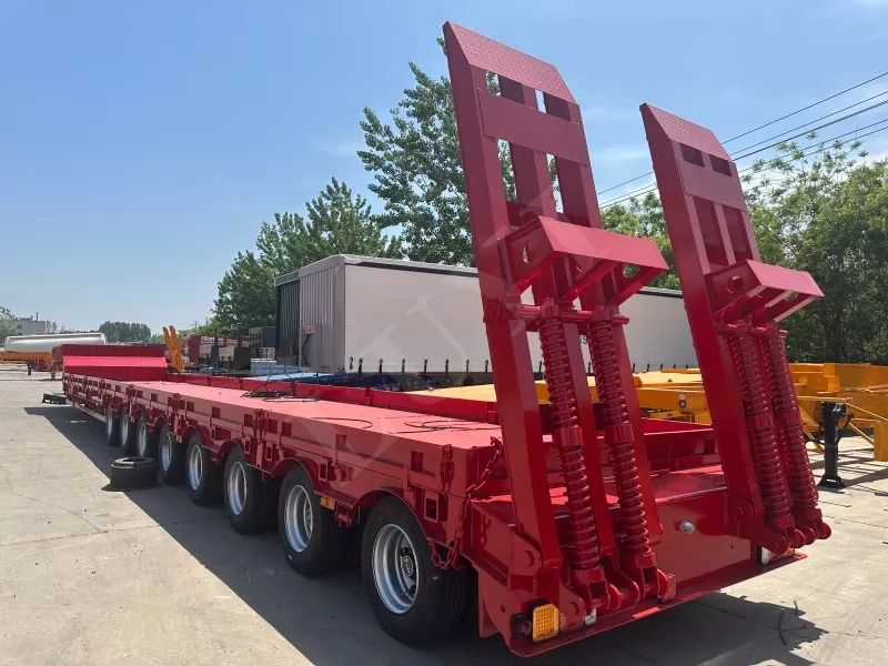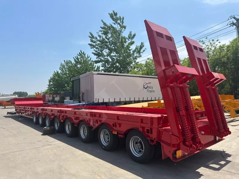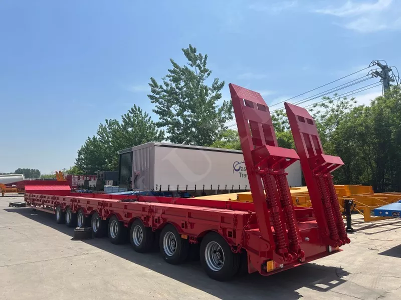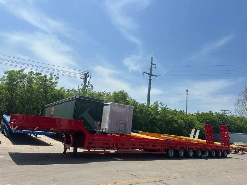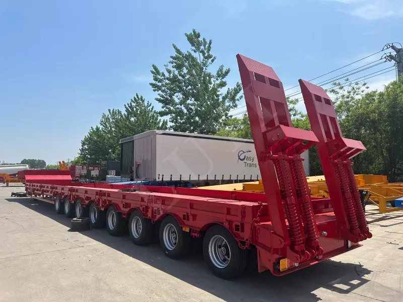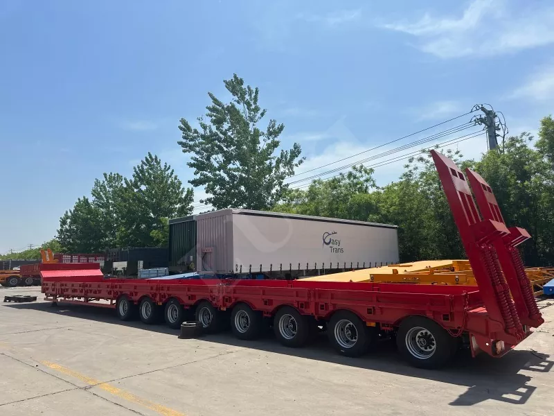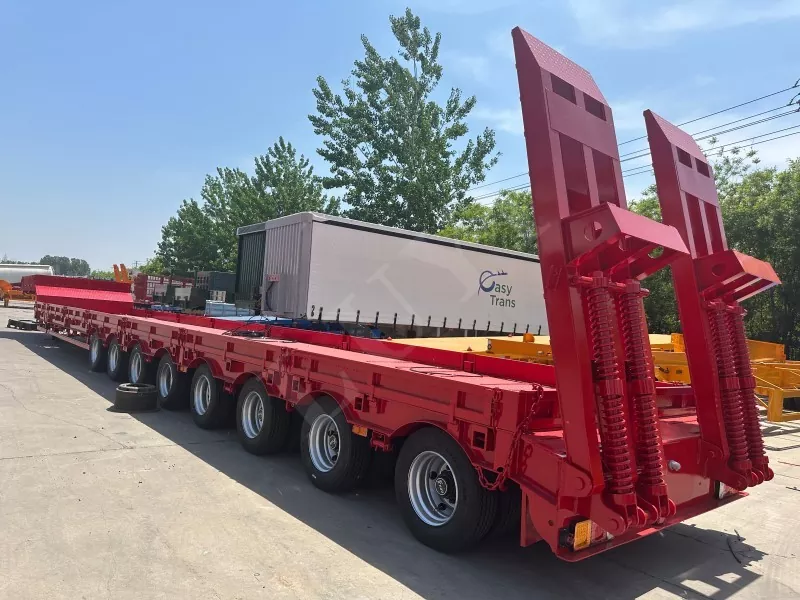 Trailer especial para 5 países da Ásia Central 17m 8m Transporte 80-100 toneladas. Nosso semi-reboque retrátil de 8 eixo pode ser ampliado à esquerda e à direita, com uma escada mecânica. Todo o veículo é feito de modelo T700 de aço resistente a desgaste de alta resistência. Seu eixo pode ser selecionado para levantar e girar, e possui um elevador e uma válvula inferior.