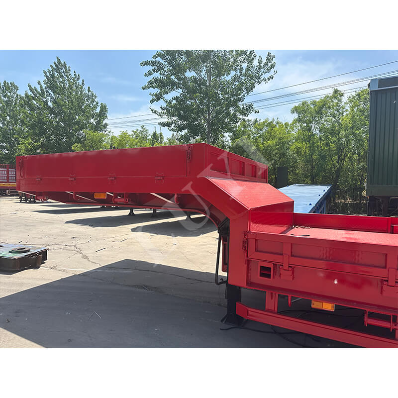 O reboque vem com função retrátil, adaptando-se com flexibilidade às necessidades de transporte de equipamentos pesados de diversos tamanhos. Ele é configurado com trem de pouso padrão de 28 toneladas e pinos mestre JOST opcionais em tamanhos de 2 polegadas (50 mm) ou 3,5 polegadas (90 mm), garantindo estabilidade de conexão e adaptabilidade de aplicação. Personalizável em cores, torna-se o caminhão reboque preferido para transporte de equipamentos pesados devido à sua estrutura confiável e configuração profissional.