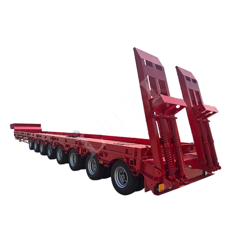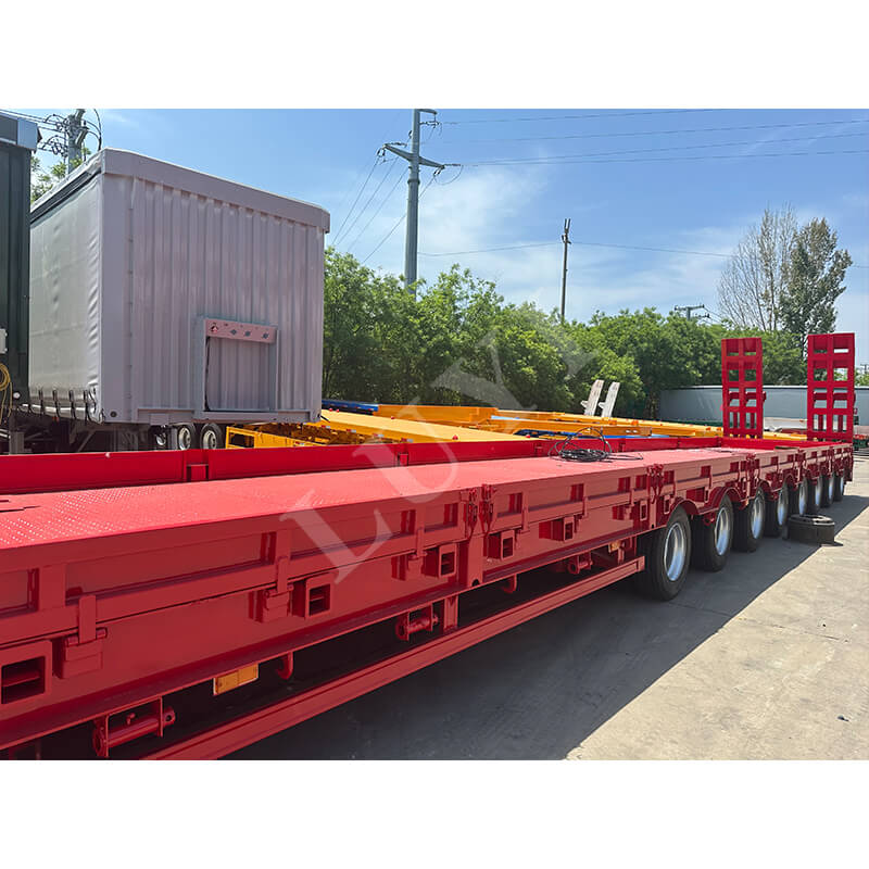Originário da província de Shandong, China, o semirreboque retrátil Lowboy de 8 eixos Luyi é um semirreboque profissional de transporte pesado, feito principalmente de aço carbono e alumínio. Equipado com 8 eixos de marcas renomadas como Fuwa e BPW, possui suspensão mecânica ou pneumática e é compatível com diversas especificações de pneus, incluindo 12R22.5, 12.00R20 e 11R22.5, apresentando robusta capacidade de carga com carga útil máxima efetiva de 100 toneladas.