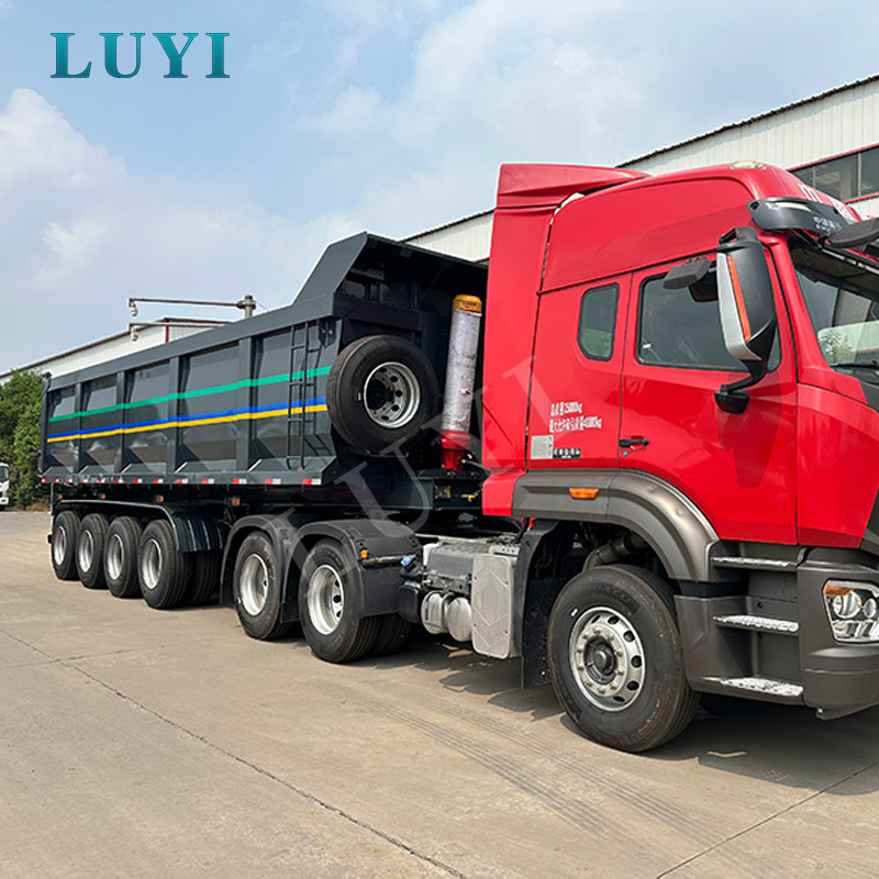 O semirreboque basculante traseiro hidráulico em forma de U de 4 eixos e 100 toneladas da LUYI, originário de Shandong, China, é uma ferramenta dedicada ao transporte de mercadorias a granel, como areia, cascalho e carvão. Construído em aço carbono de alta qualidade, possui dimensões precisas de 12050x2550x3600MM e capacidade máxima de carga de 100 toneladas, cujo potente desempenho atende às necessidades de transporte pesado.
