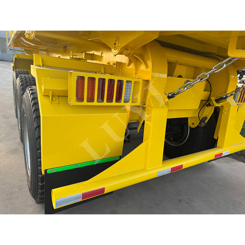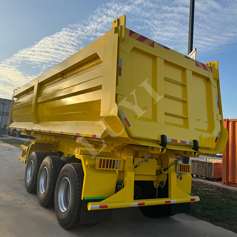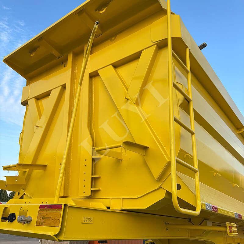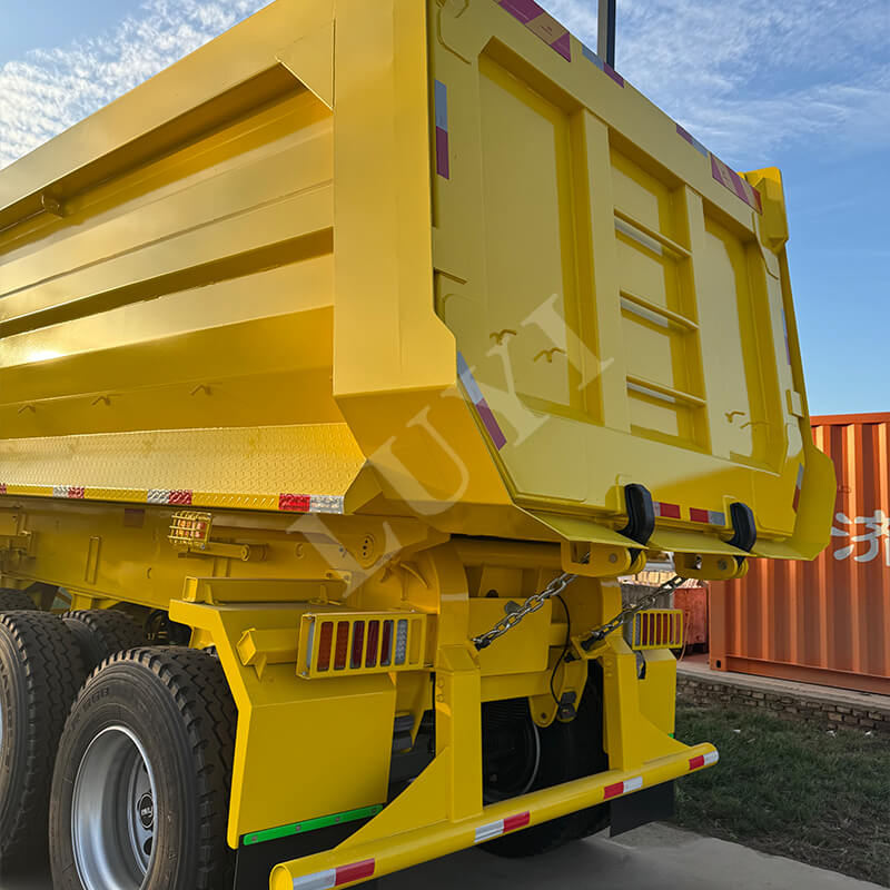 O semirreboque basculante traseiro tipo U hidráulico de 3 eixos para serviço pesado LUYI, originário da província de Shandong, China, é um reboque de caminhão basculante especialmente projetado para materiais como areia, cascalho e grãos. O material pode ser selecionado entre aço carbono ou liga de alumínio, o que equilibra as necessidades de resistência e leveza. O tamanho da carroceria é 12.500 × 2.500 × 3.600 mm, e a carga efetiva máxima chega a 60 toneladas, atendendo aos requisitos de transporte pesado.
