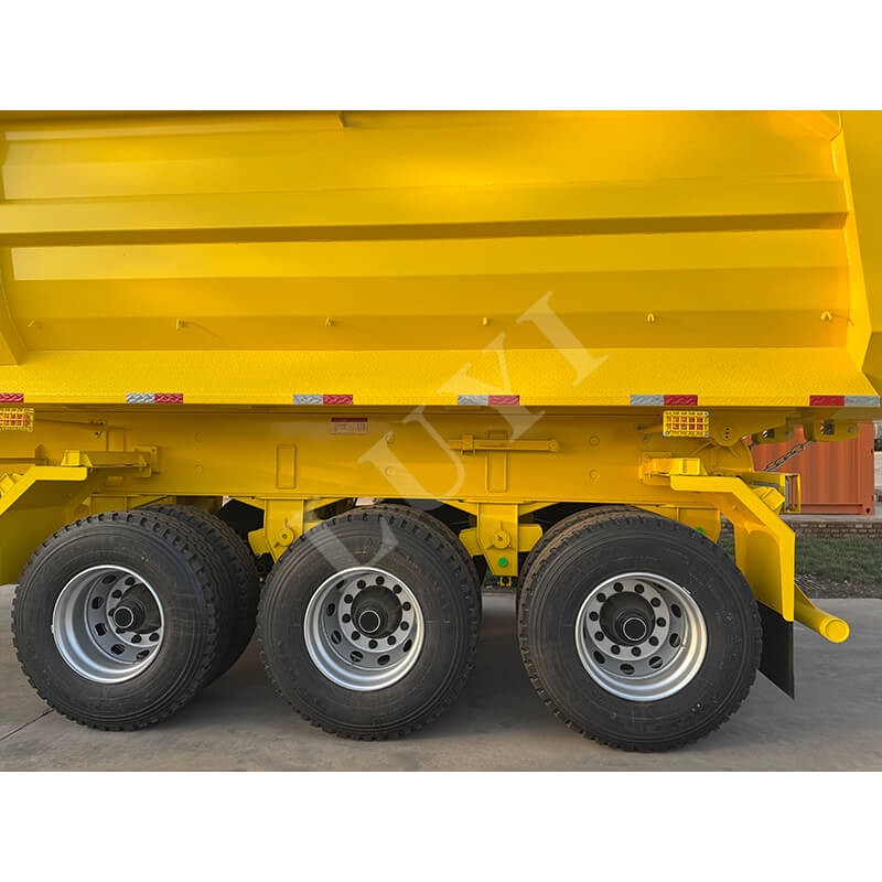 O veículo tem excelente flexibilidade. Os eixos podem ser configurados com eixos 2/3/4, equipados com eixos da marca Fuwa ou BPW. A suspensão pode ser opcionalmente mecânica ou pneumática, adaptando-se às diferentes condições da estrada; é combinado com pneus 12R22.5/12.00R20/11R22.5规格 para uma condução estável. É equipado com estabilizadores padrão de 28 toneladas para garantir a segurança do estacionamento. O pino mestre oferece opções JOST de 2 polegadas (50 mm) ou 3,5 polegadas (90 mm). A cor pode ser personalizada de acordo com a necessidade do cliente. O projeto do despejo hidráulico é eficiente e conveniente, proporcionando uma solução de alta qualidade para transporte de materiais.