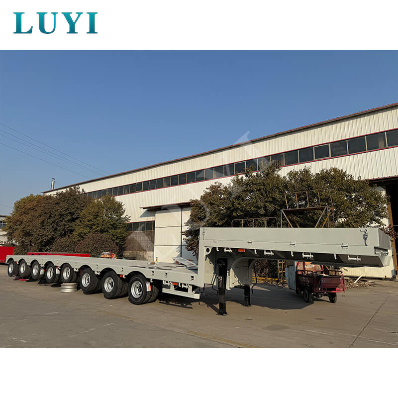 A viga principal é construída em aço de alta resistência T700/Q345, combinada com uma estrutura de 8 eixos e suspensão mecânica/a ar opcional, garantindo distribuição de peso estável e maior segurança. O sistema de freios de linha dupla garante segurança na direção, enquanto o trem de pouso padrão de 28 toneladas melhora a conveniência de carga e descarga. Equipado com diversas especificações de pneus (11,00r20, 12r22,5, 315, 385) e montantes padrão JOST (2 polegadas/50 mm ou 3,5 polegadas/90 mm), o semirreboque apresenta pintura de poliuretano resistente à corrosão e oferece cores personalizáveis para atender às diversas necessidades de transporte pesado.