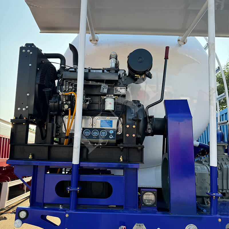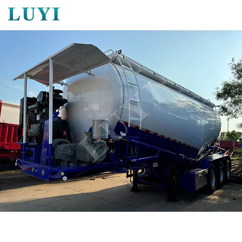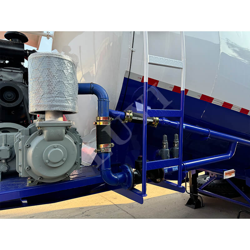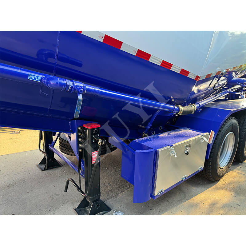 Este semirreboque utiliza um design de 3 eixos para atender aos requisitos de conformidade de carga rodoviária, levando em consideração a capacidade de carga e a estabilidade de condução, e precisa ser usado em conjunto com um trator. O tanque tem volume efetivo de 40 metros cúbicos e é especialmente projetado para materiais pulverulentos e granulares, como cimento e cinzas volantes.