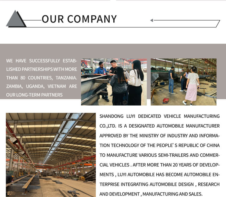 O semirreboque LUYI de 8 eixos, 17 m e 80 toneladas com suspensão pneumática extensível, um semirreboque de alto desempenho de Shandong, China, é dedicado ao transporte de equipamentos pesados. Adota aço carbono ou alumínio como materiais, com design extensível para caber em diferentes comprimentos de carga e carga útil máxima de 80 toneladas para atender às demandas de cargas pesadas.